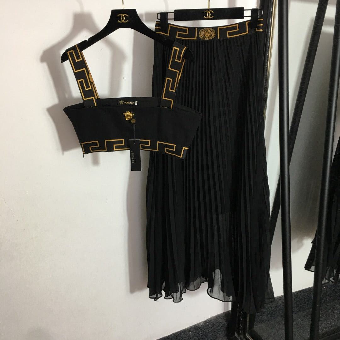 Versace Metal-Embellished Tube-Top Camisole and High-Waisted Pleated Skirt Set