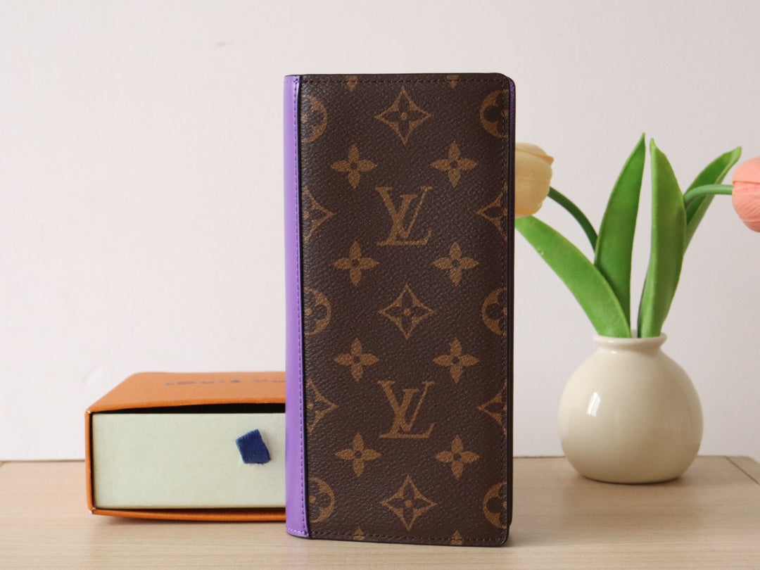 LV M81538 Brazza Wallet Purple Monogram Canvas & Calfskin 224095