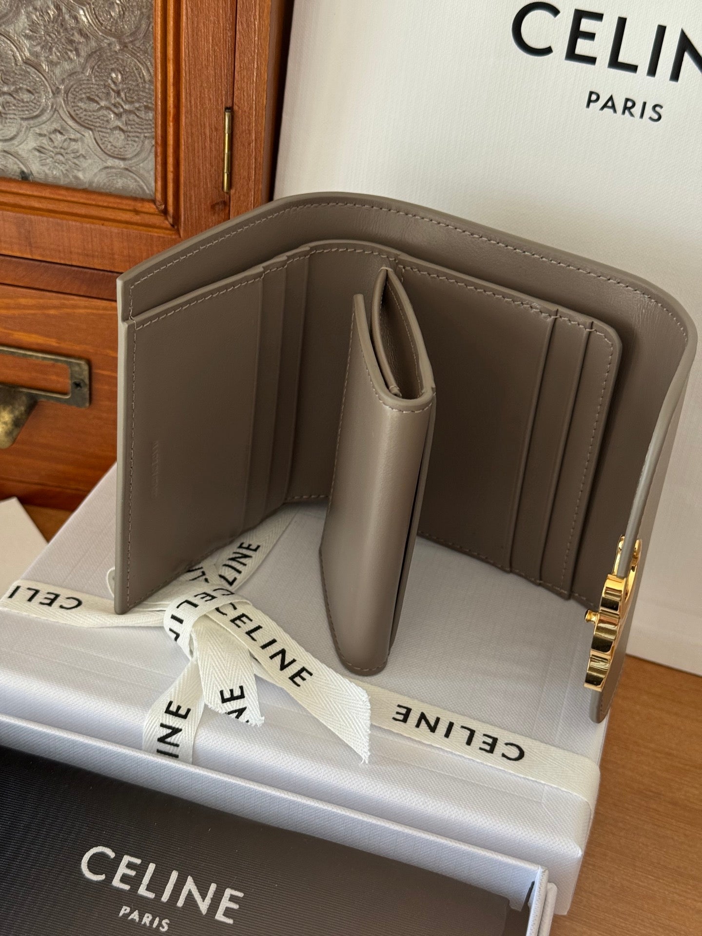 TRIOMPHE 10 CALFSKIN WALLET MODERN TAUPE