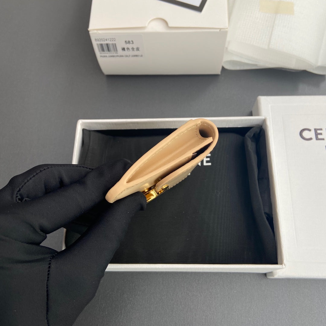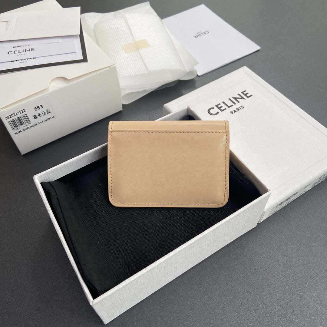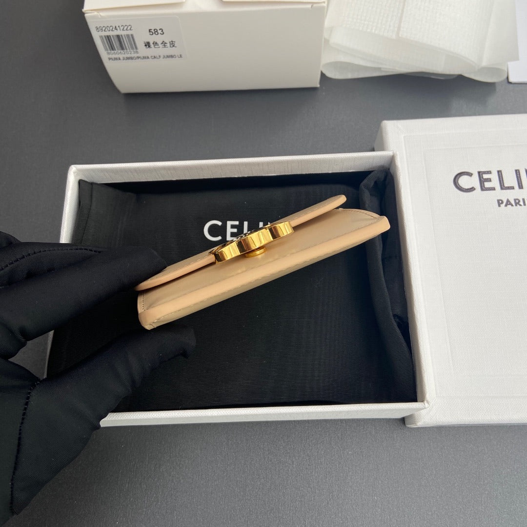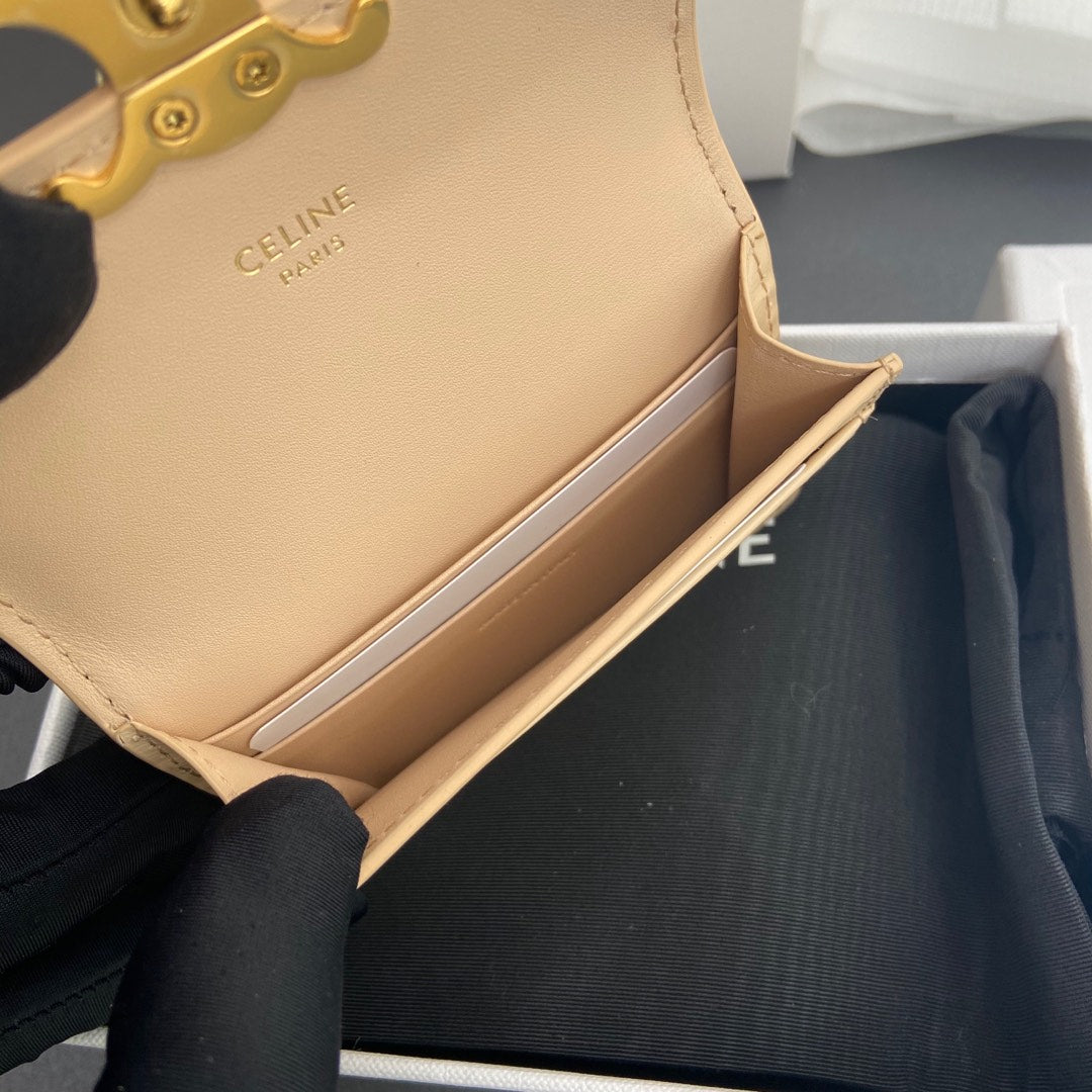 TRIOMPHE 10i583 Flap Card Holder Beige Shiny Cowhide