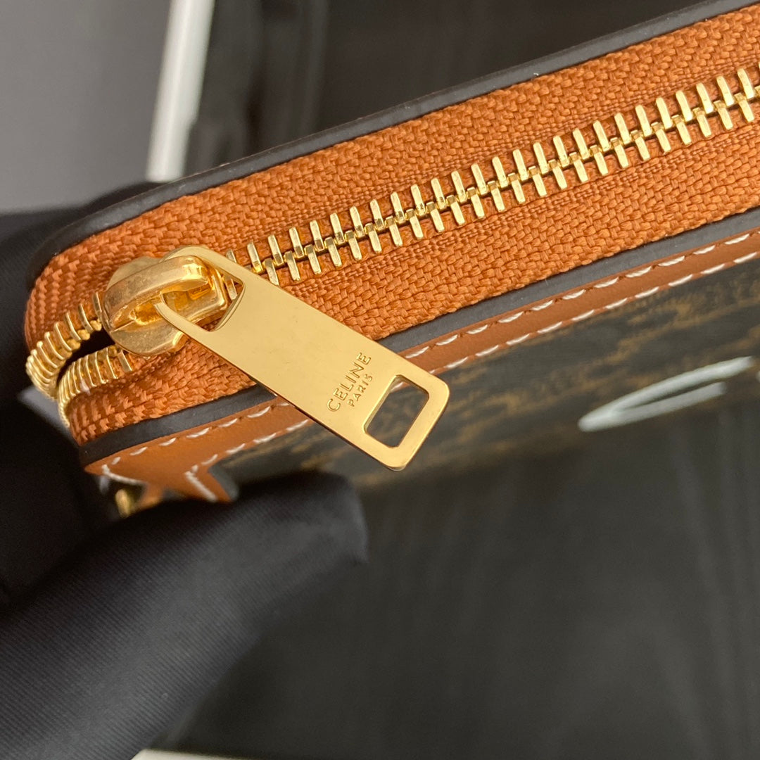 TRIOMPHE Celine Small Strap Wallet Tan Canvas&Cowhile