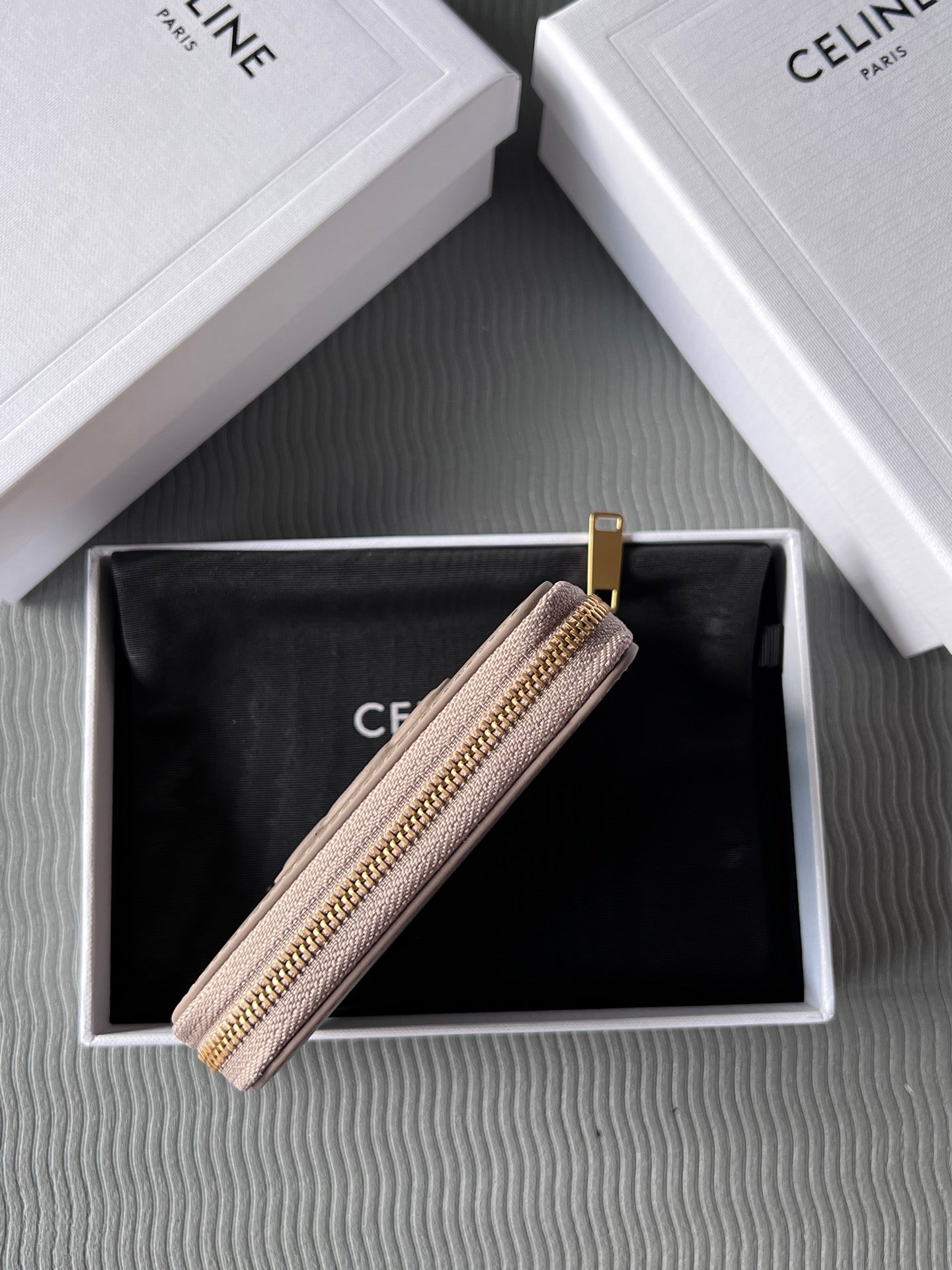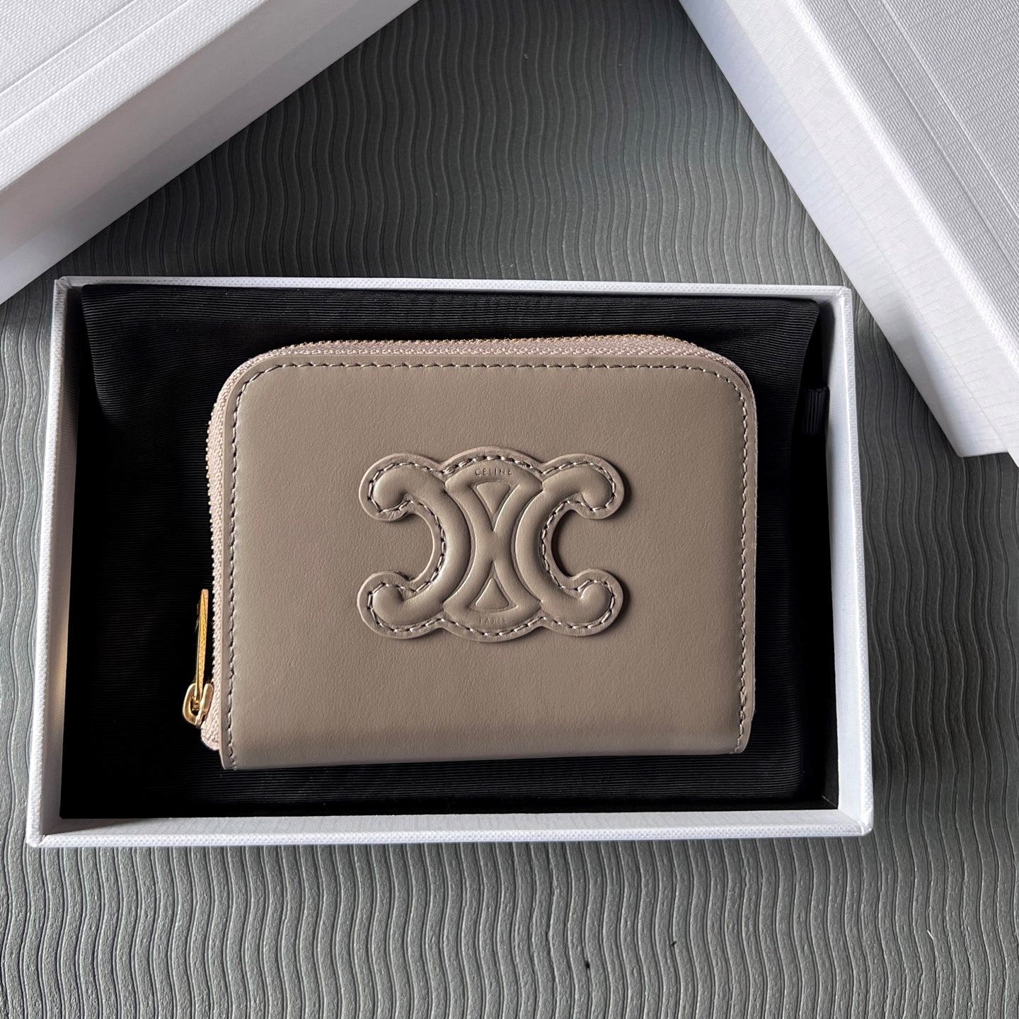 TRIOMPHE Compact Zipped Wallet Modern Taupe Cowhide Leather