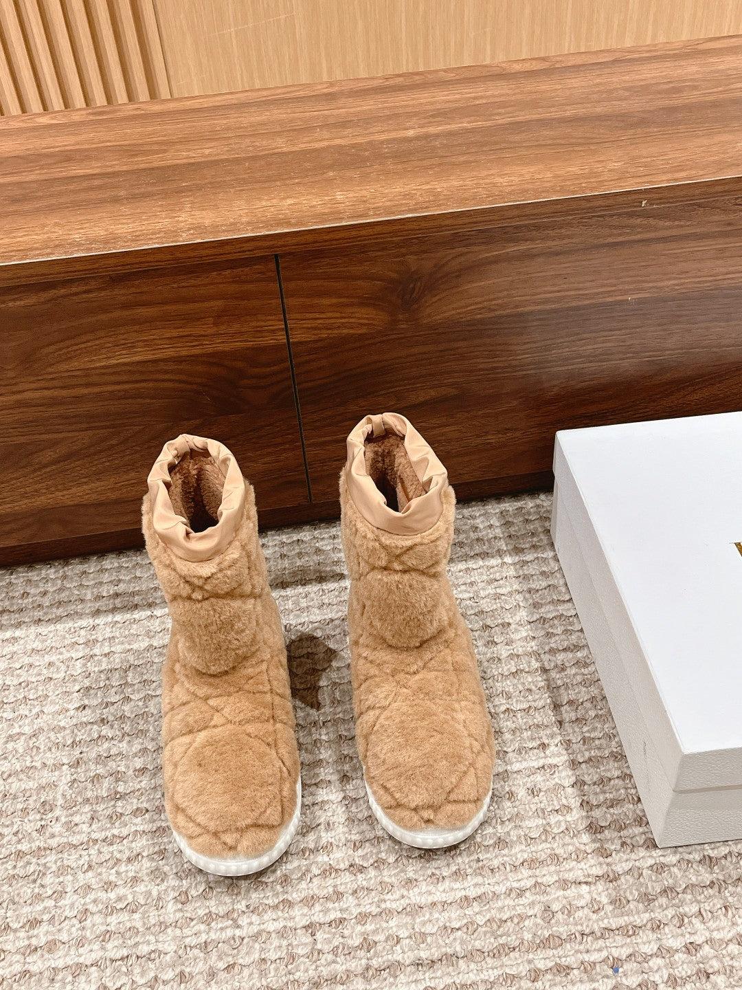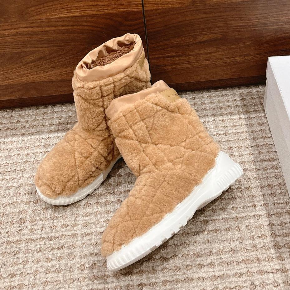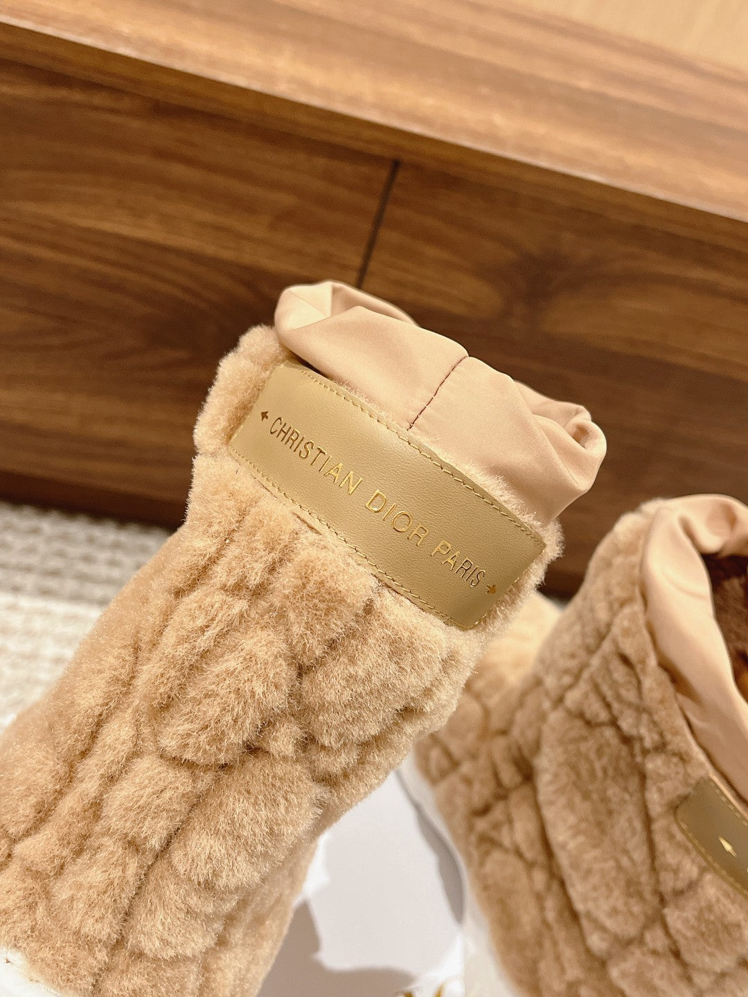 CD Ankle Boots Beige Fleece And Windbreaker Fabric