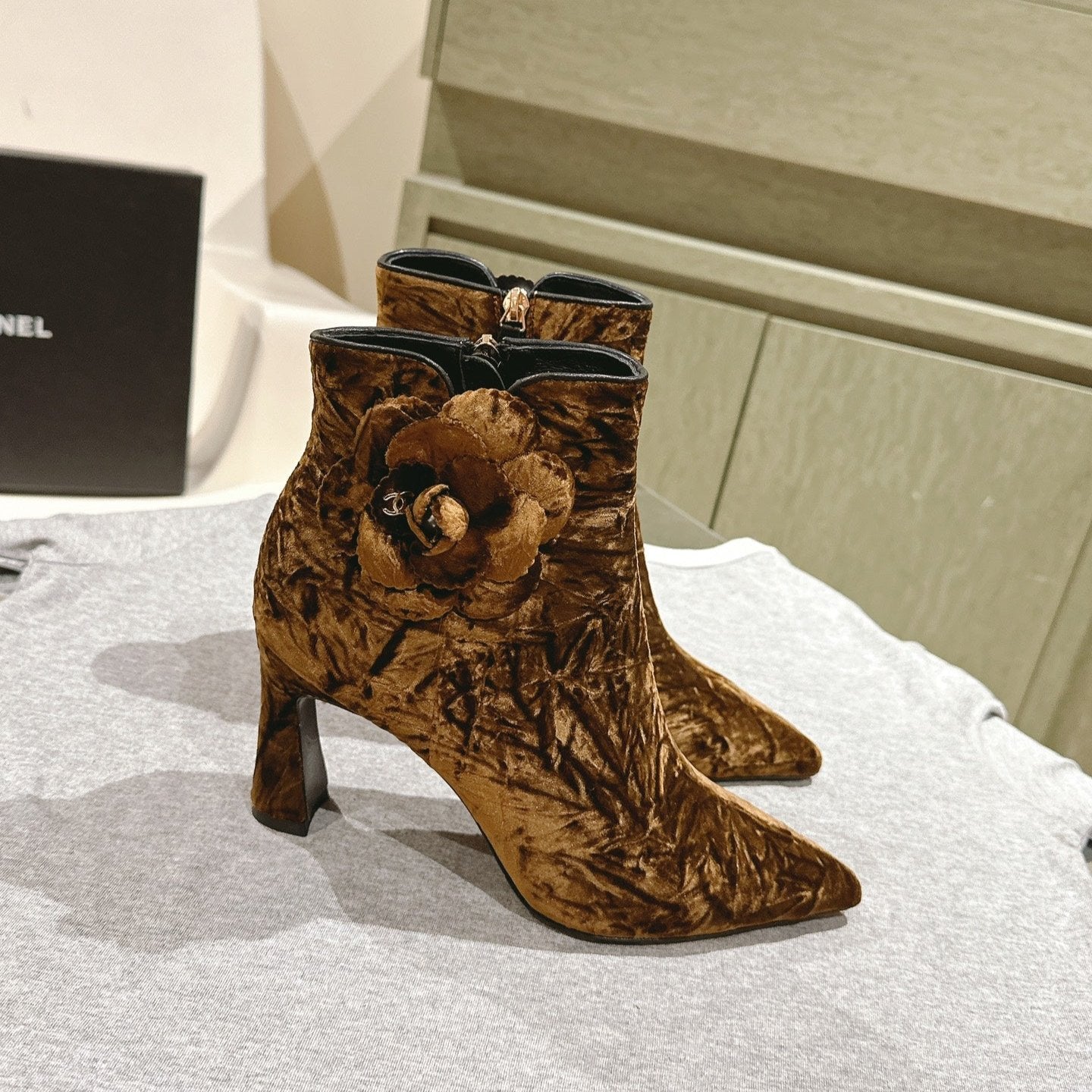 CC Ankle Boots 85mm Brown Yellow Rough Velvet Fabric