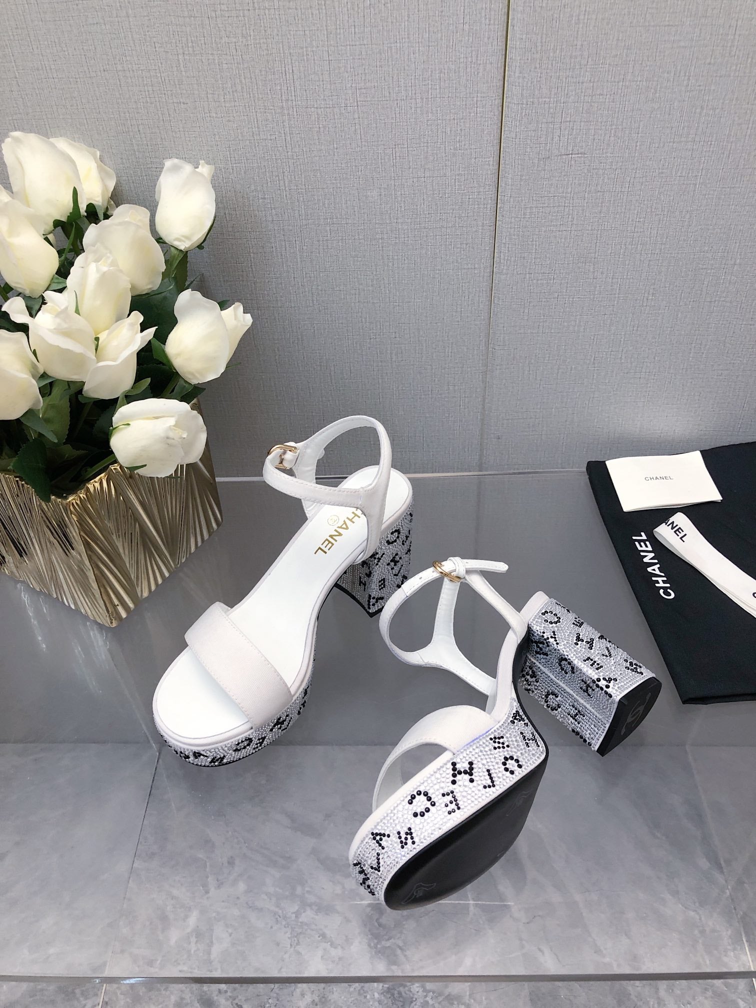 BLOCK HEEL WITH CRYSTAL 9 CM SANDAL IN WHITE FABRIC