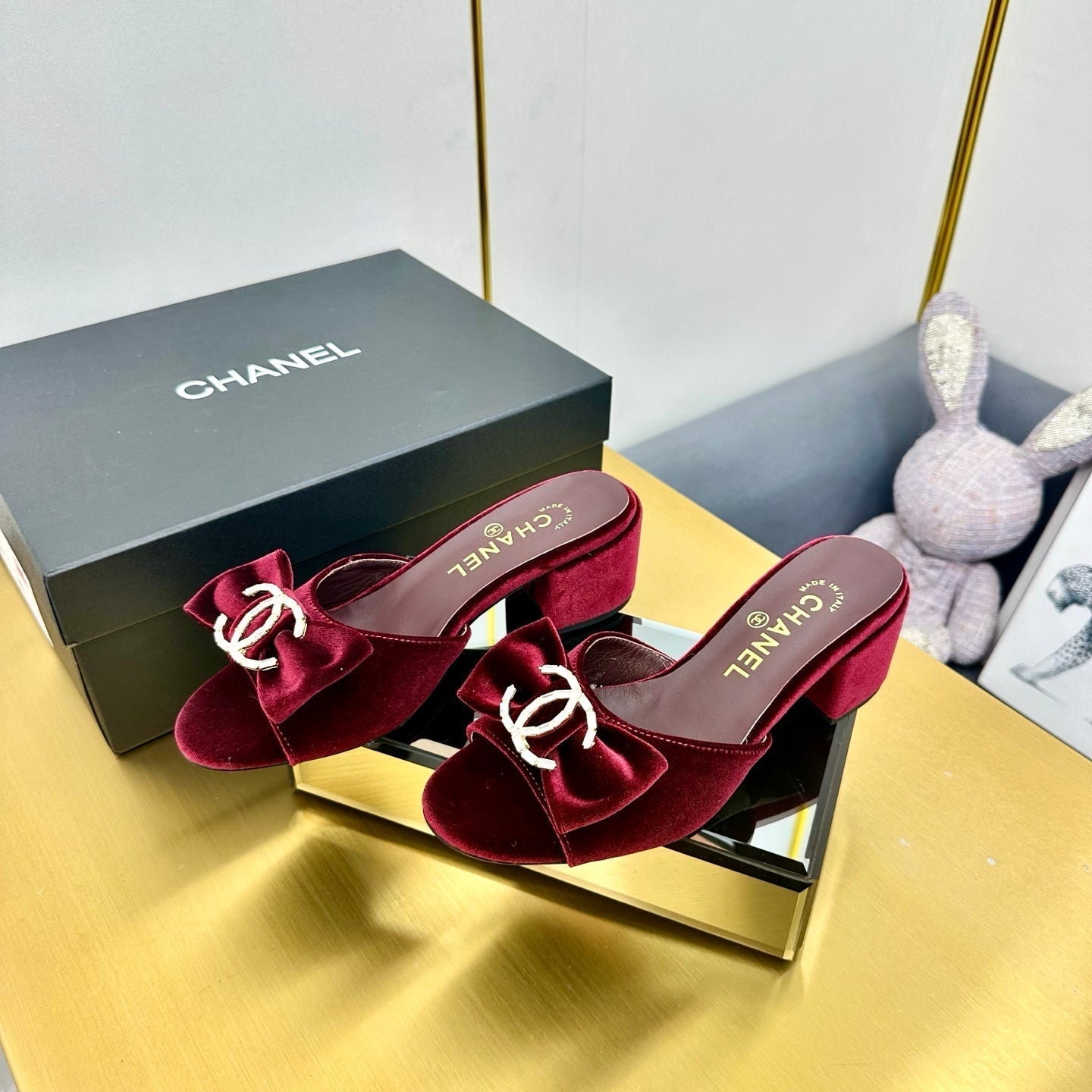 cc 25 bow mule sandal 50mm burgundy velvet 238479