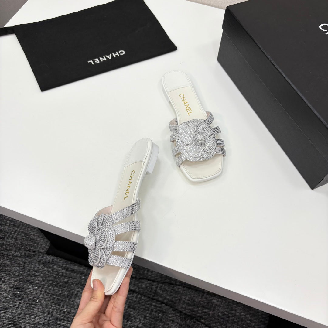 CC 25 Camellia Open Flat Mule Silver Stone Grain And Sheepskin 368852