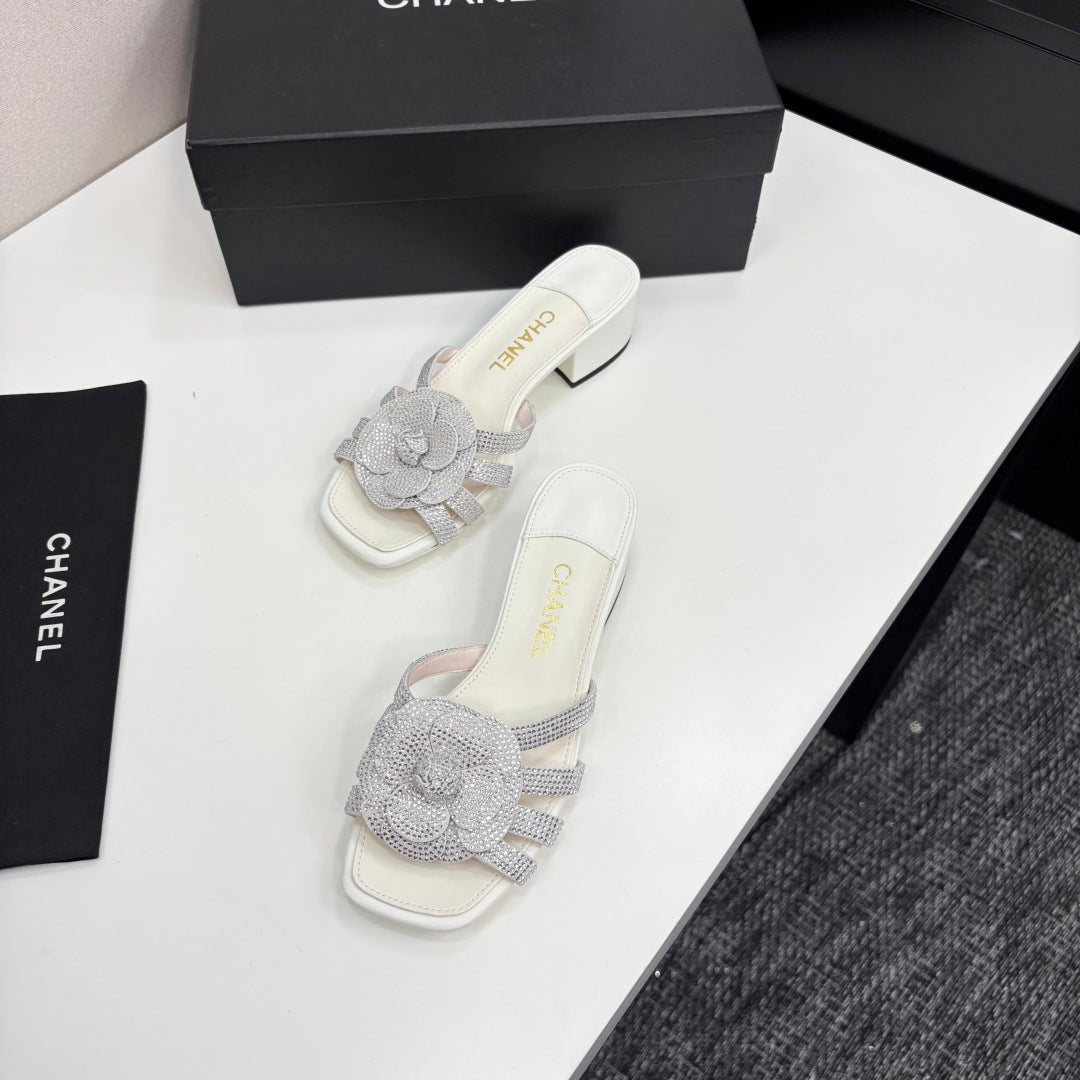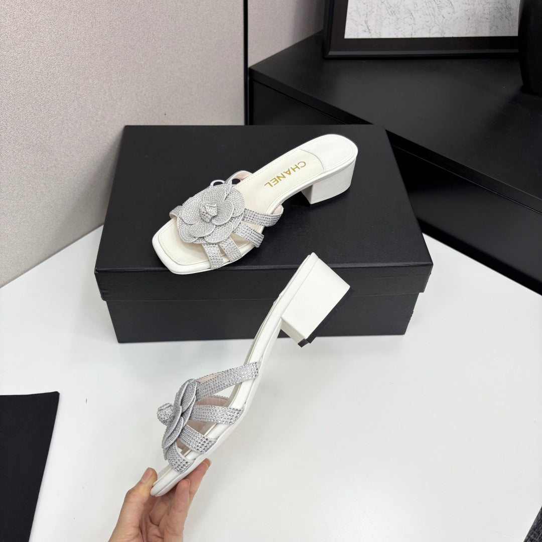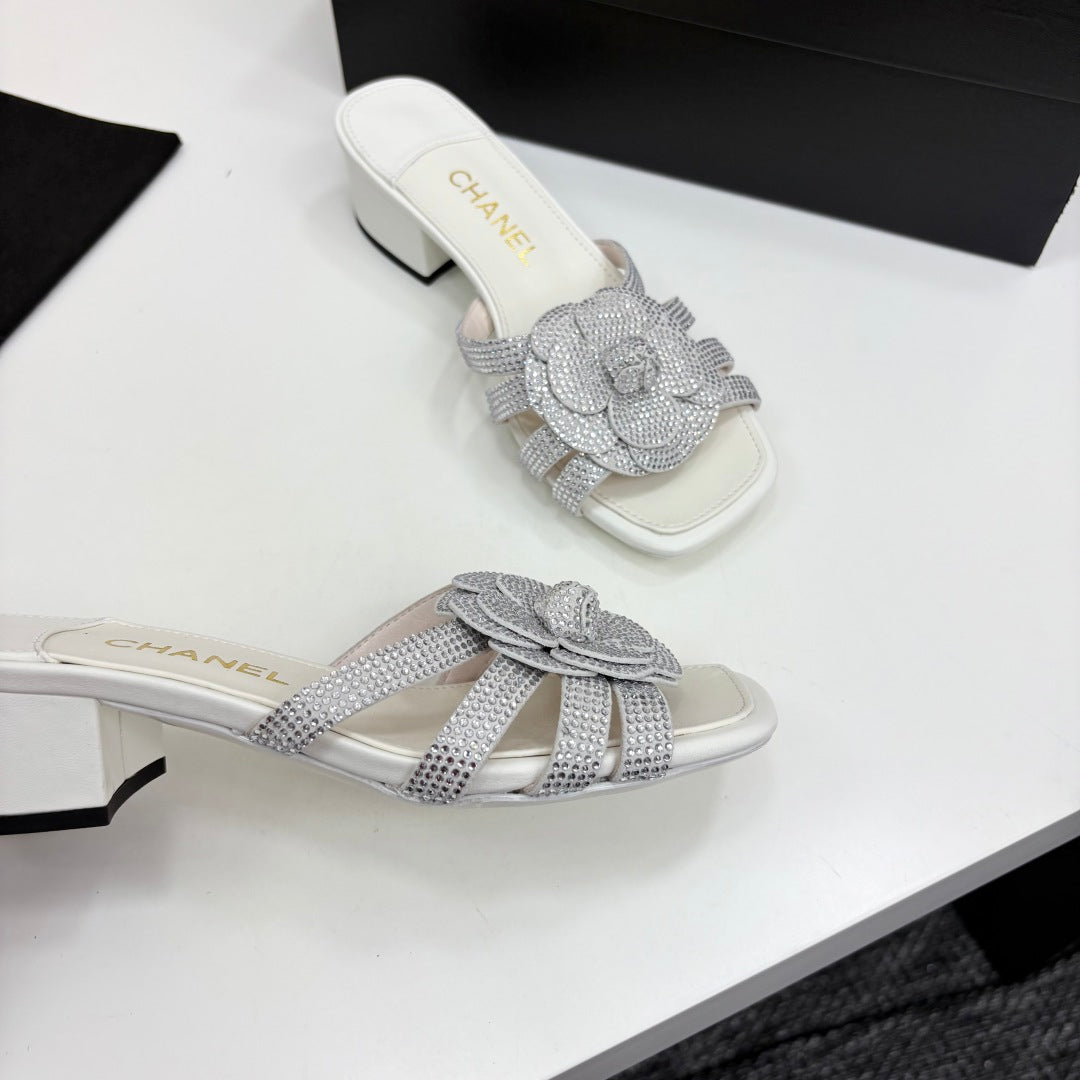 CC 25 Camellia Open Heel Mule Sandals 50mm Silver Stone Grain And Sheepskin 368859