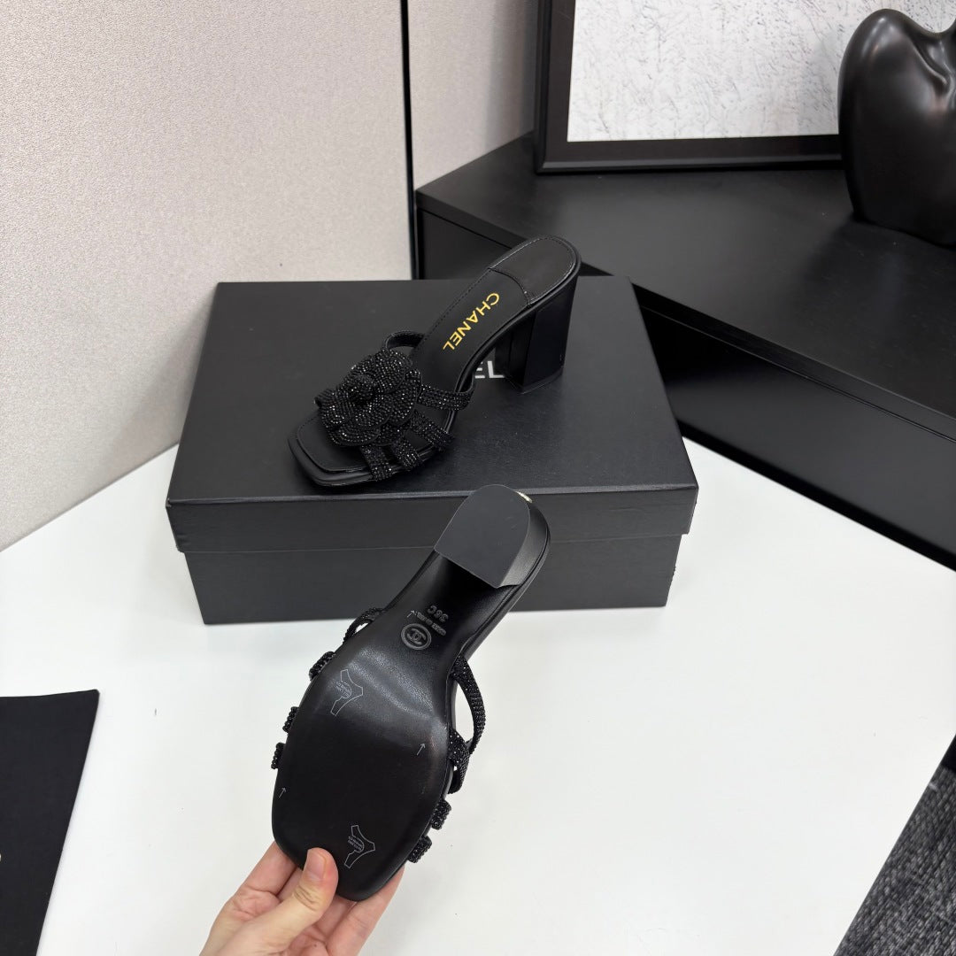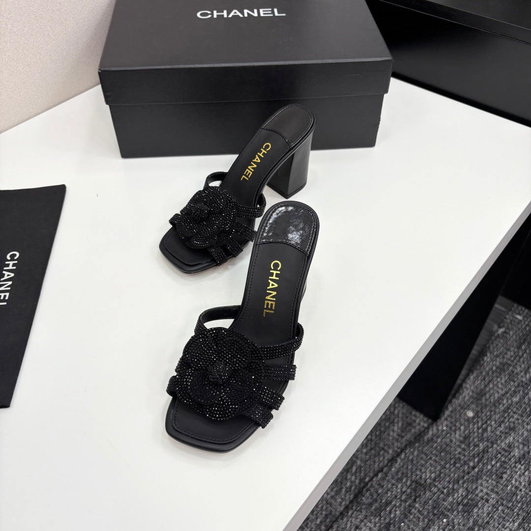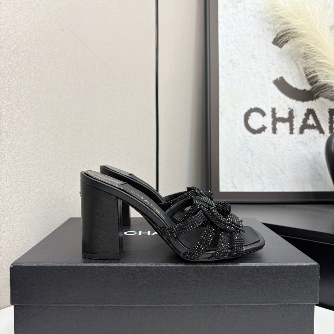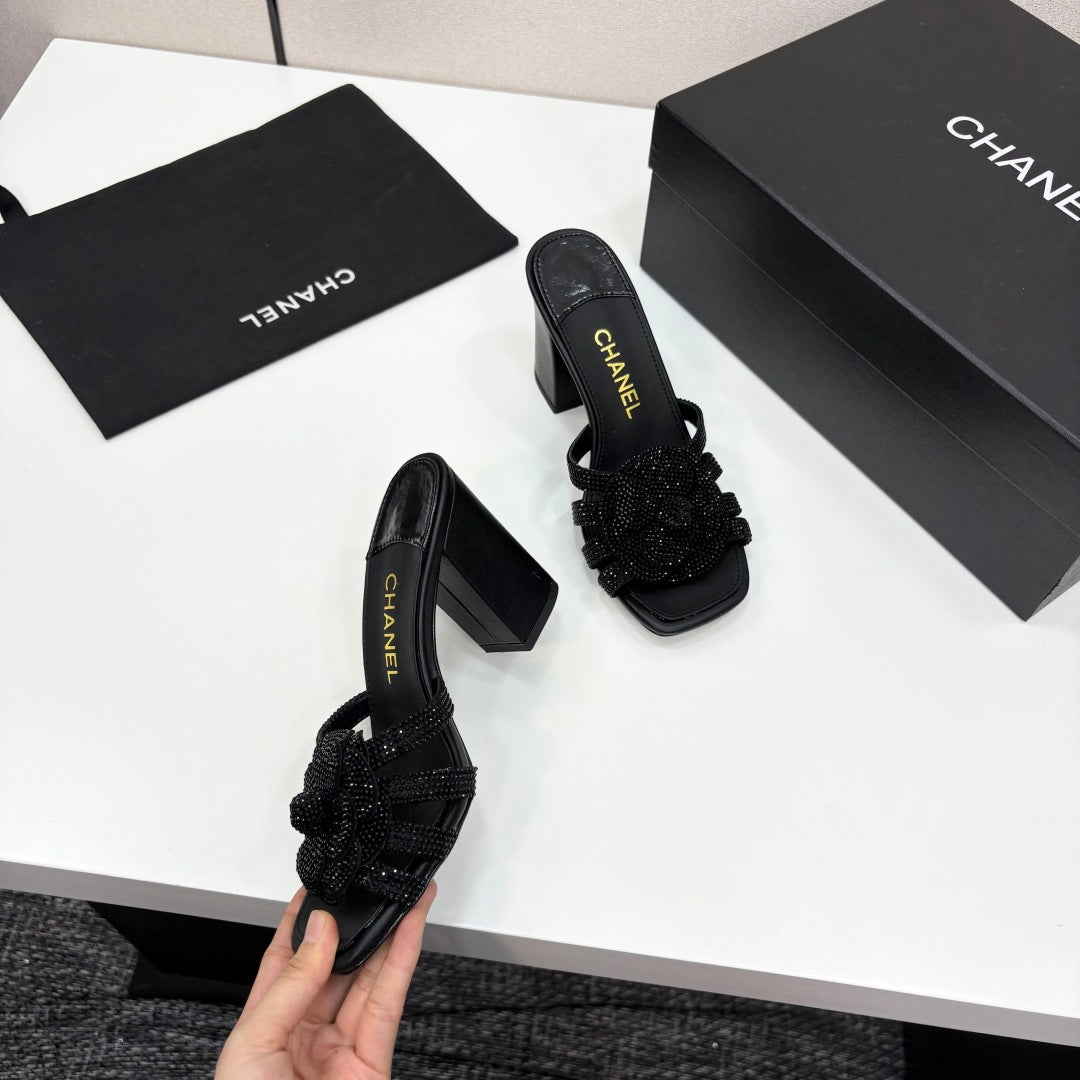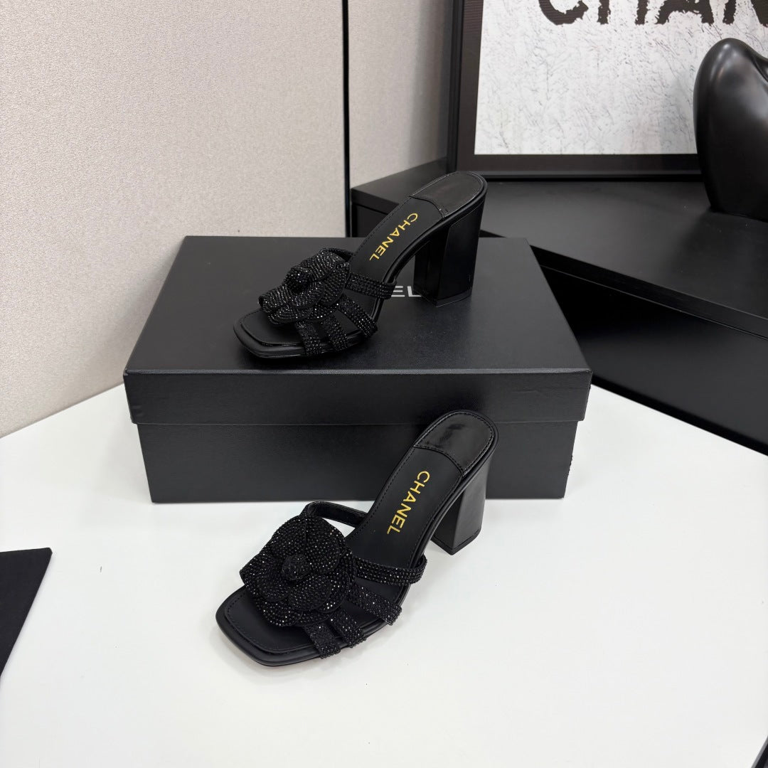 CC 25 Camellia Open Heel Mule Sandals 90mm Black Stone Grain And Sheepskin 368844
