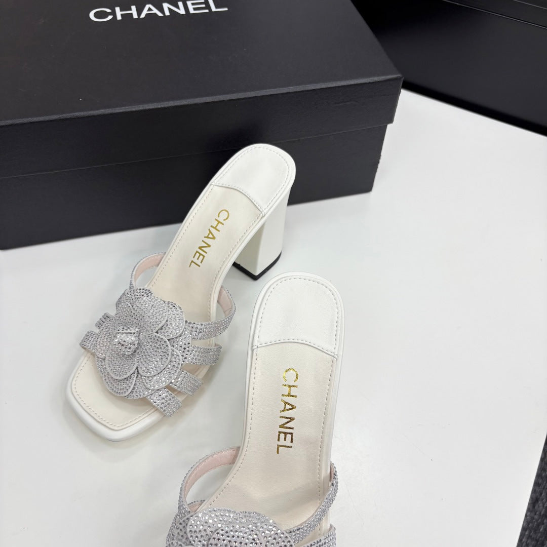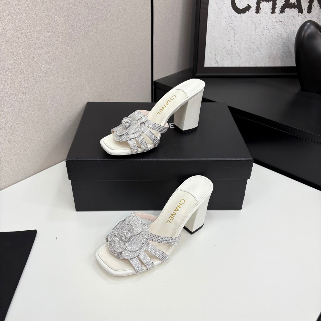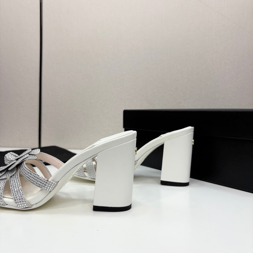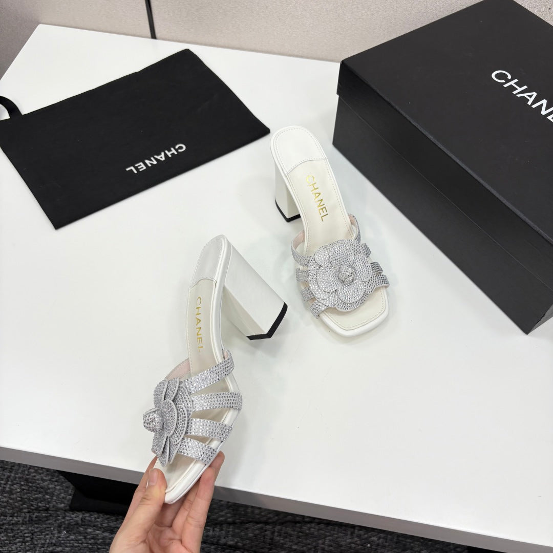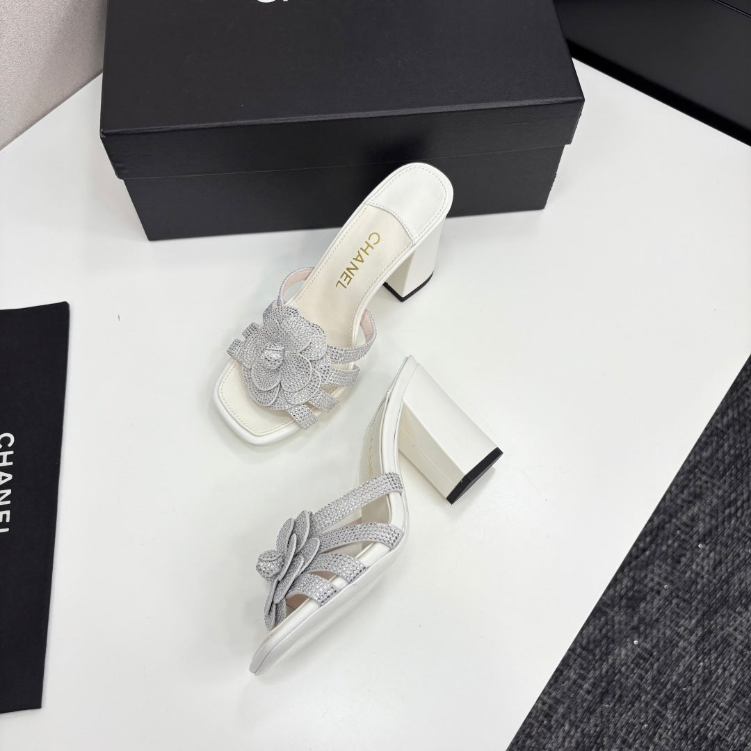 CC 25 Camellia Open Heel Mule Sandals 90mm Silver Stone Grain And Sheepskin 368845