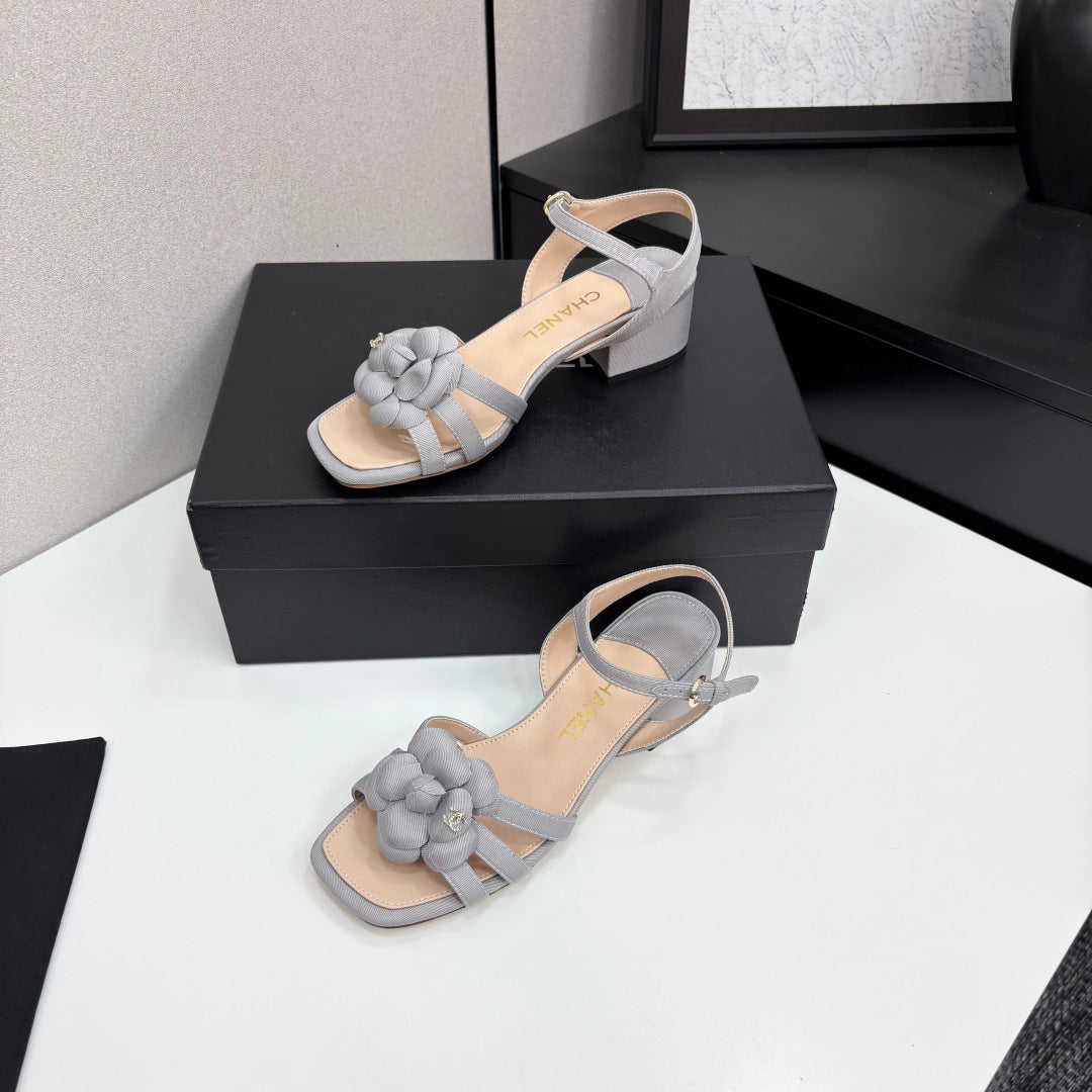 CC 25 Camellia Open Heel Sandals 50mm Grey Beige Sheepskin And Fabric 368814