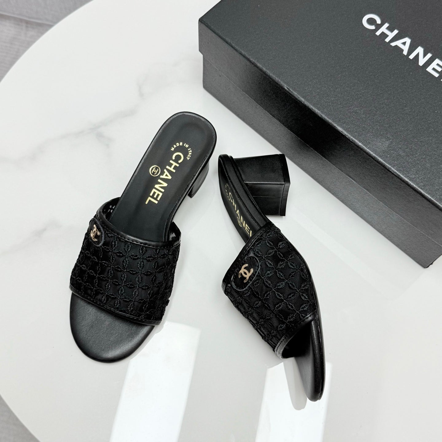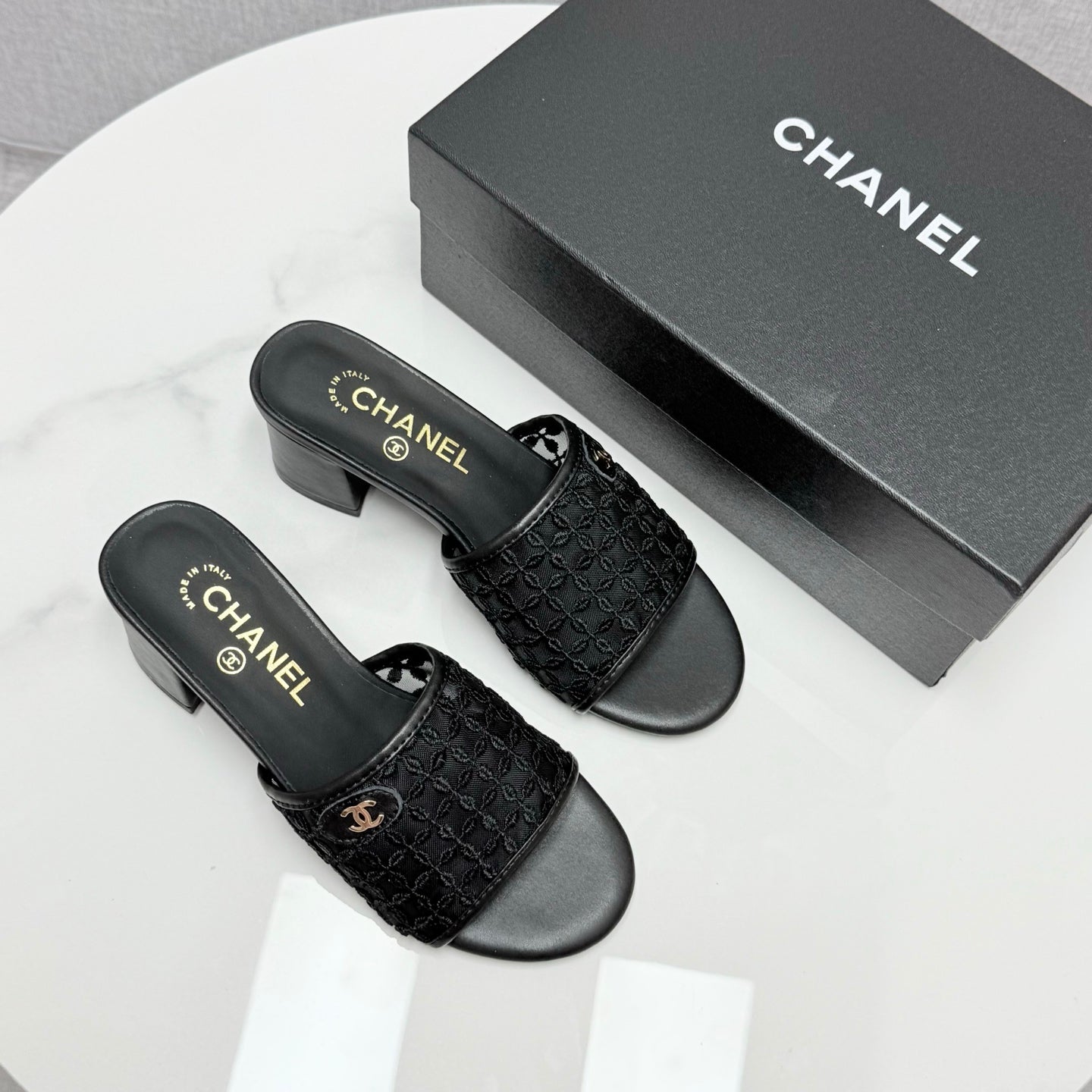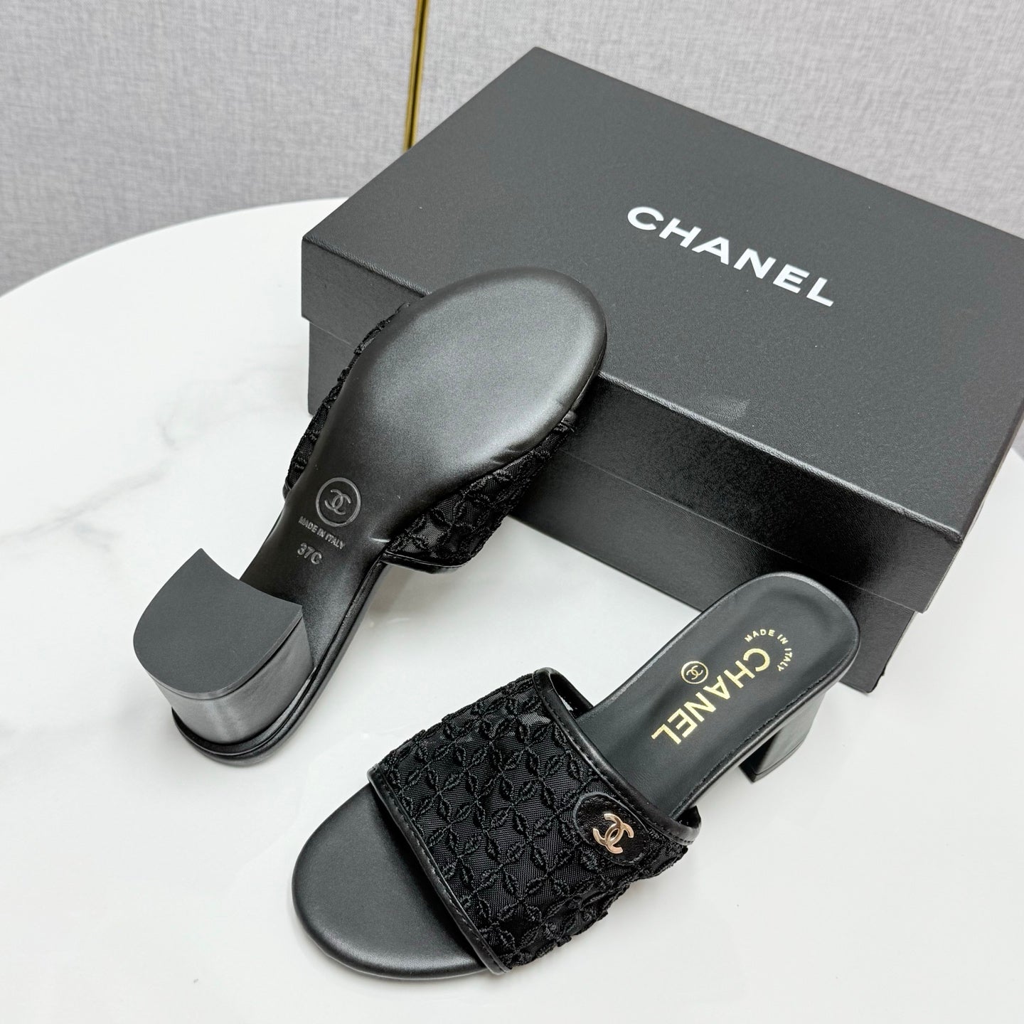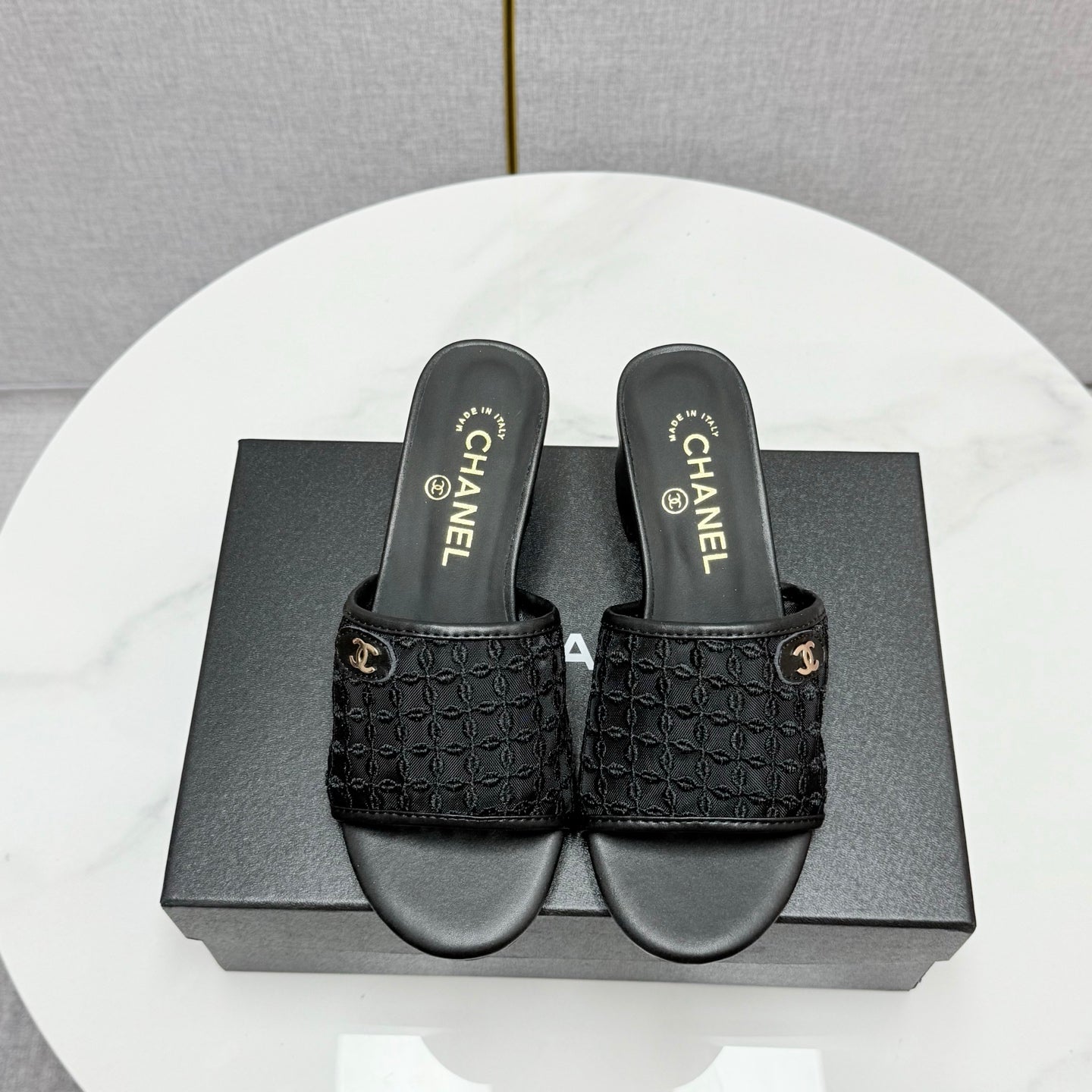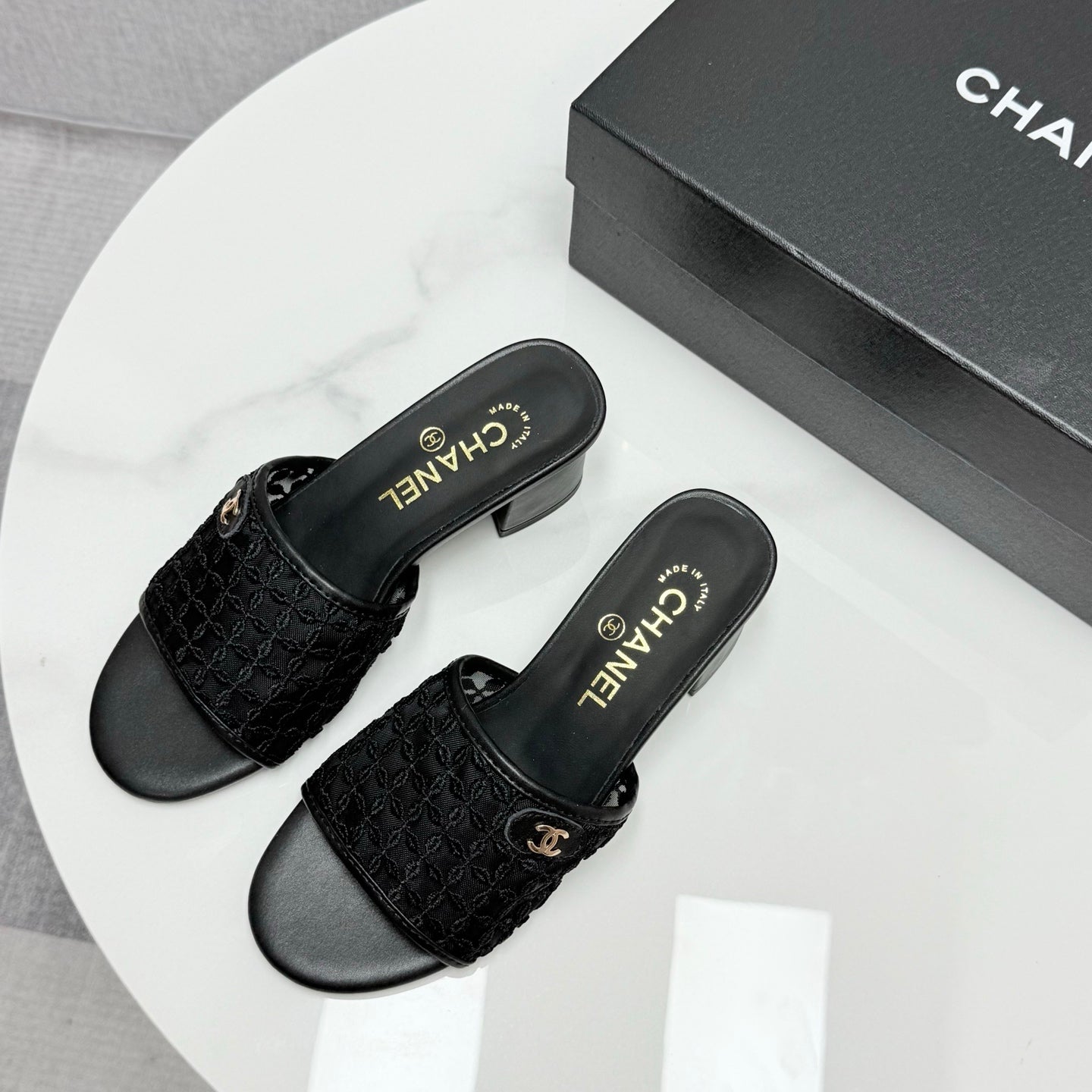 CC 25 Heel Sandals 50m Black Mesh And Sheepskin 368802