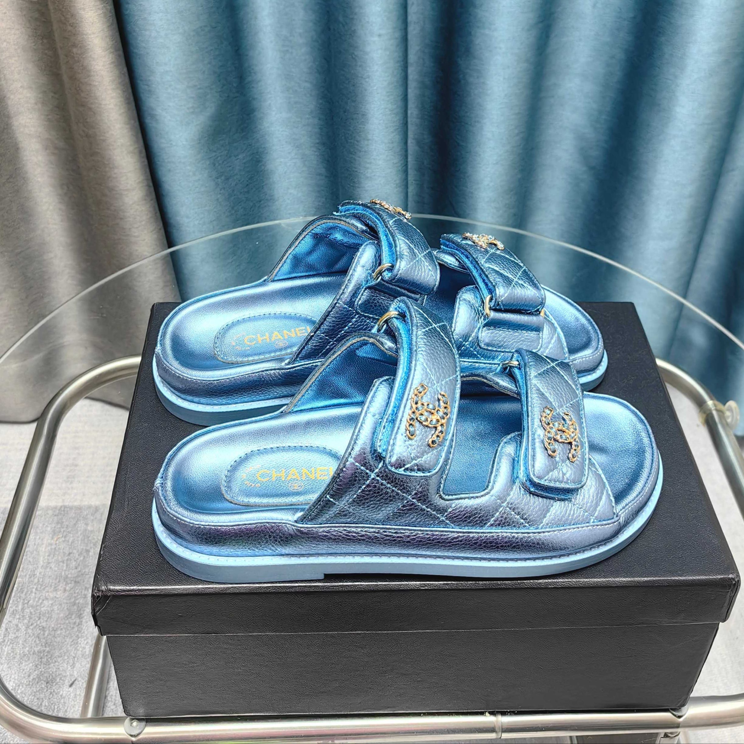 CC 25C Dad Mule Cloud Blue Metalic Grained Calfskin