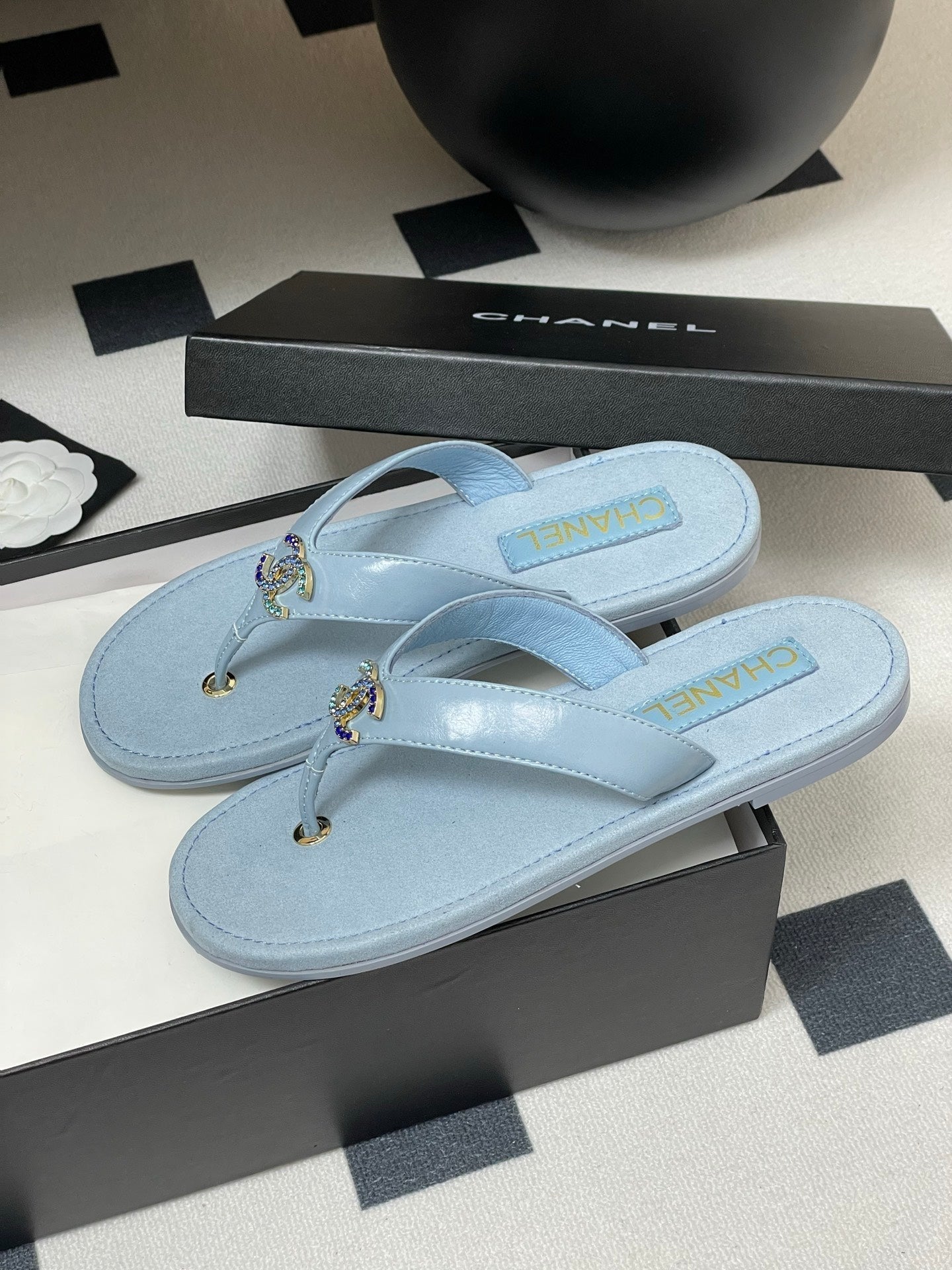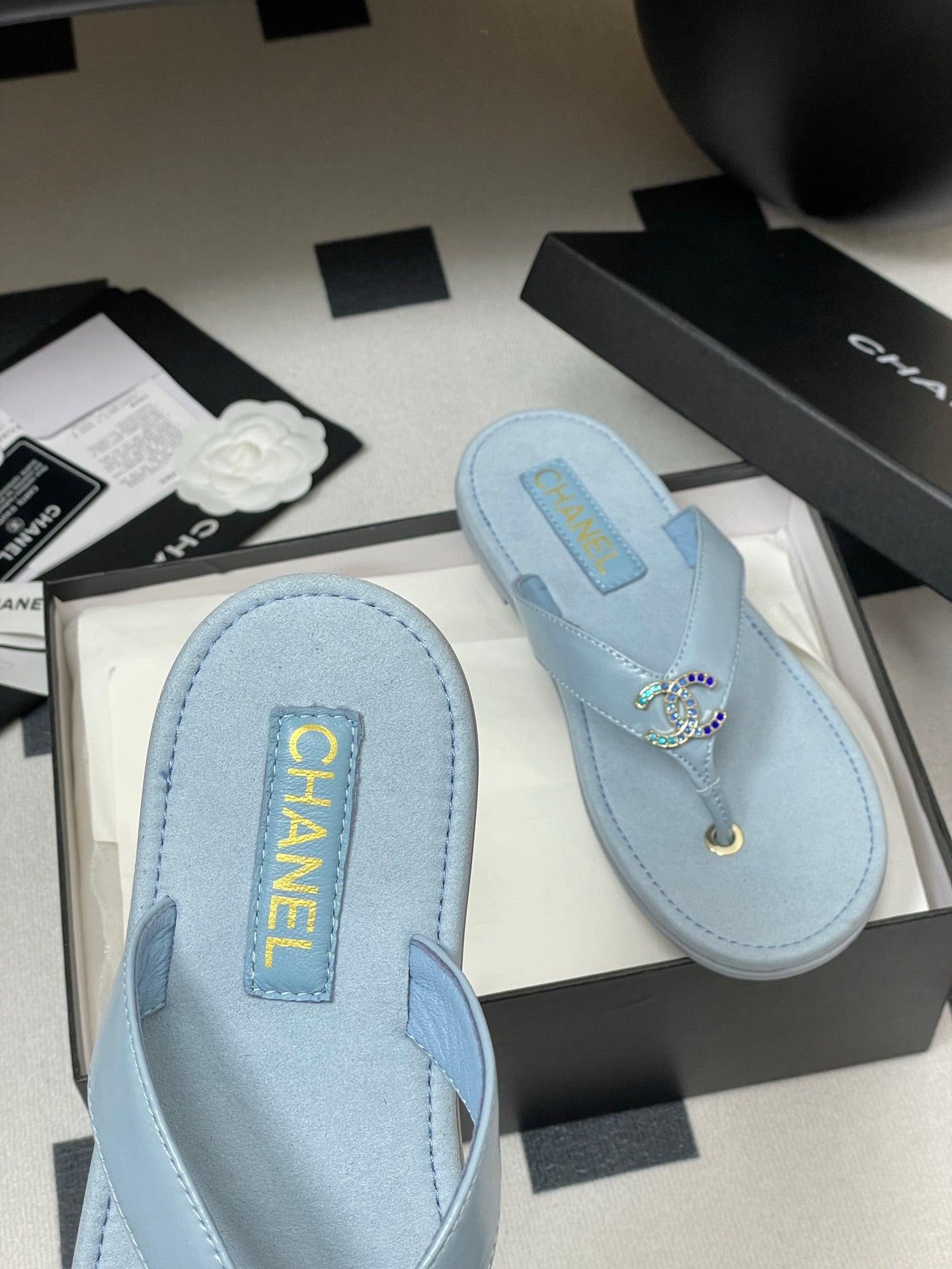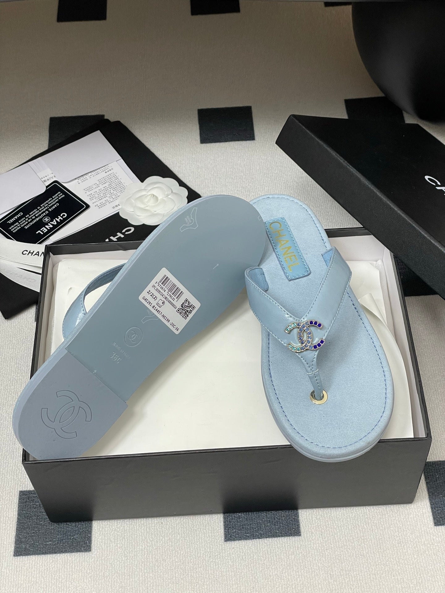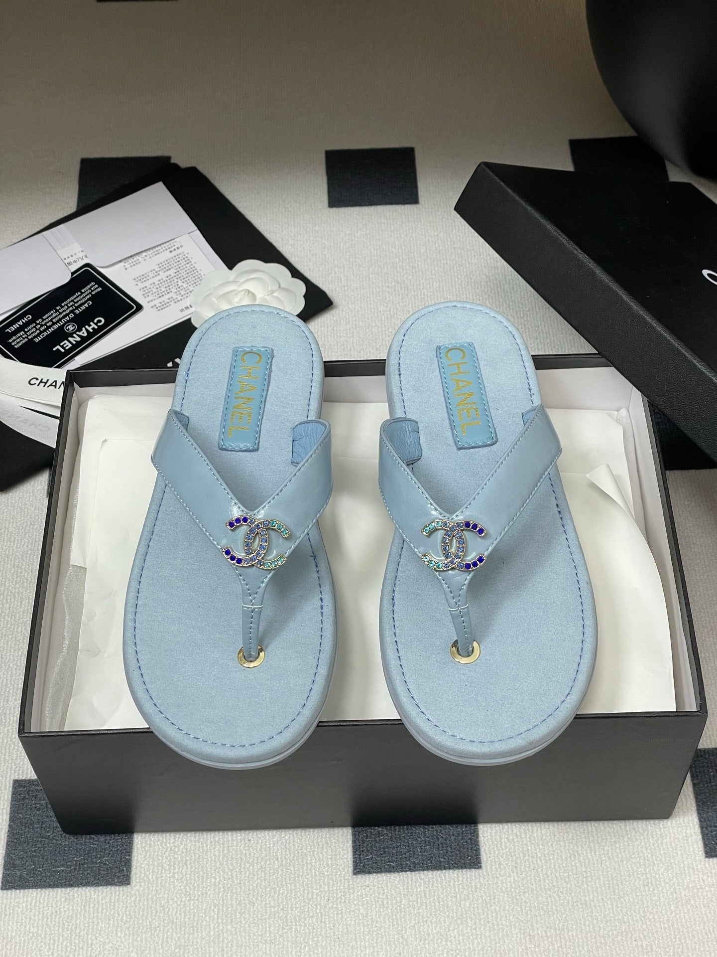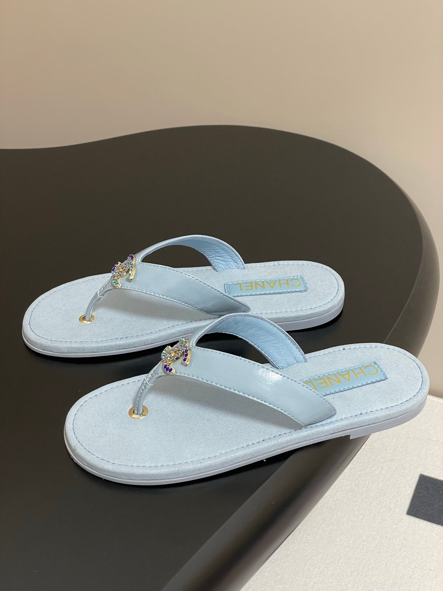 CC 25P Double C 1 Motif Thongs Sandal Baby Blue Sheepskin 247702