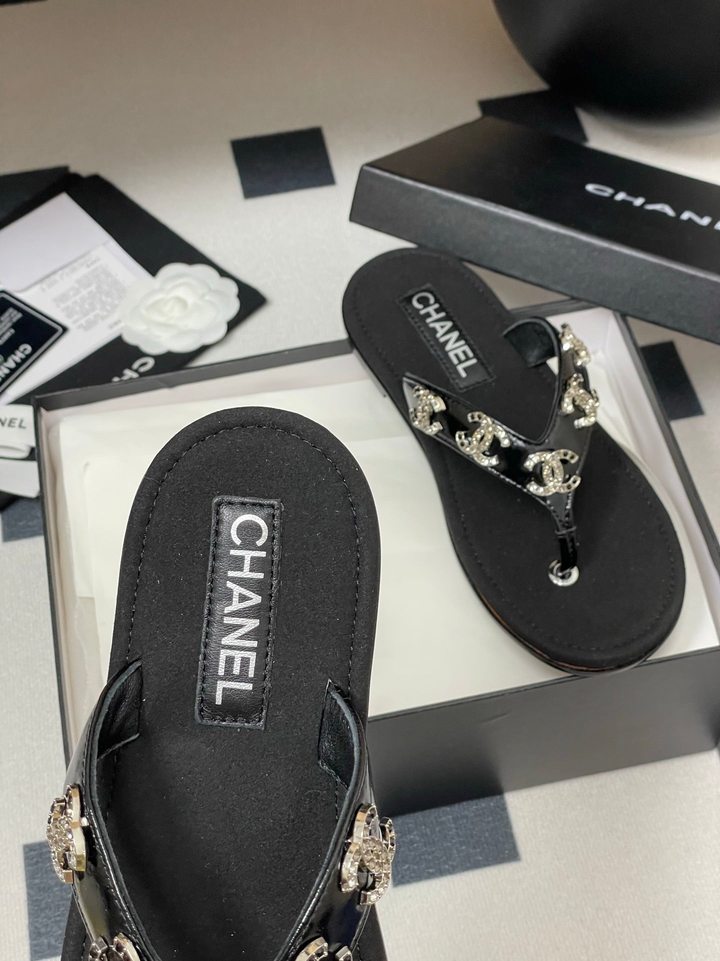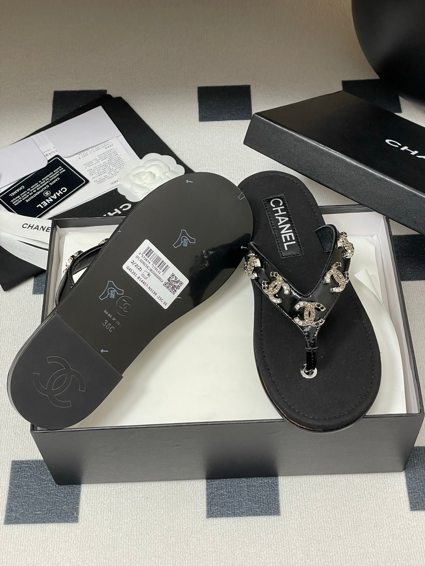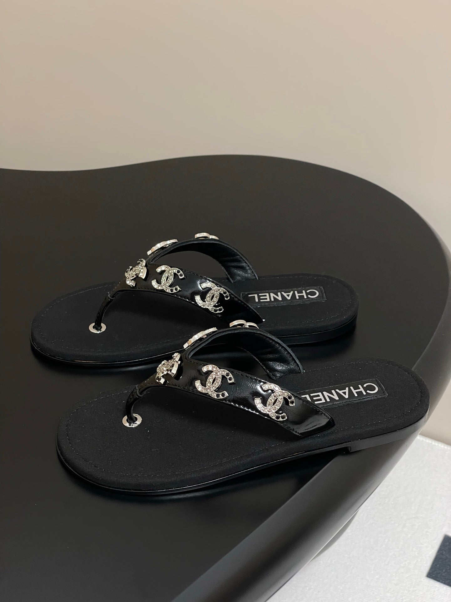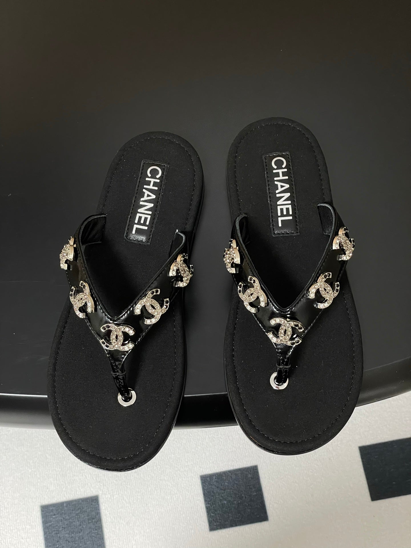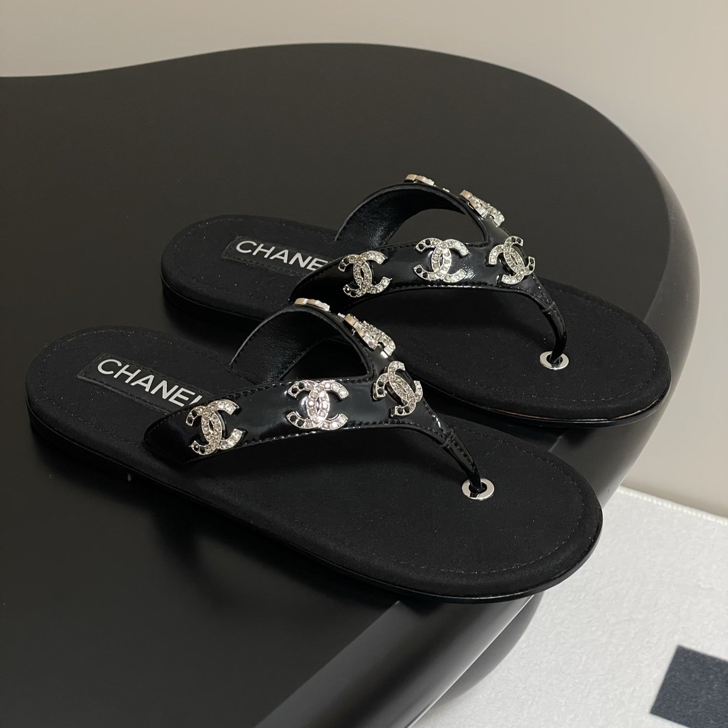 CC 25P Double C 5 Motifs Thongs Sandal Black Sheepskin 247697