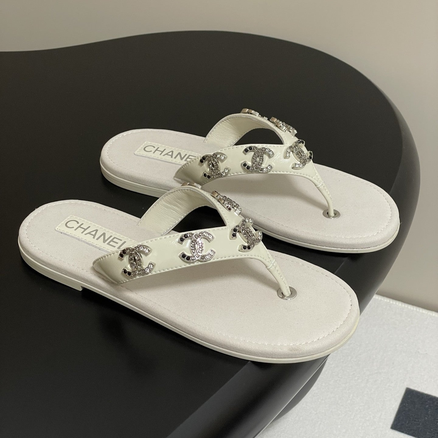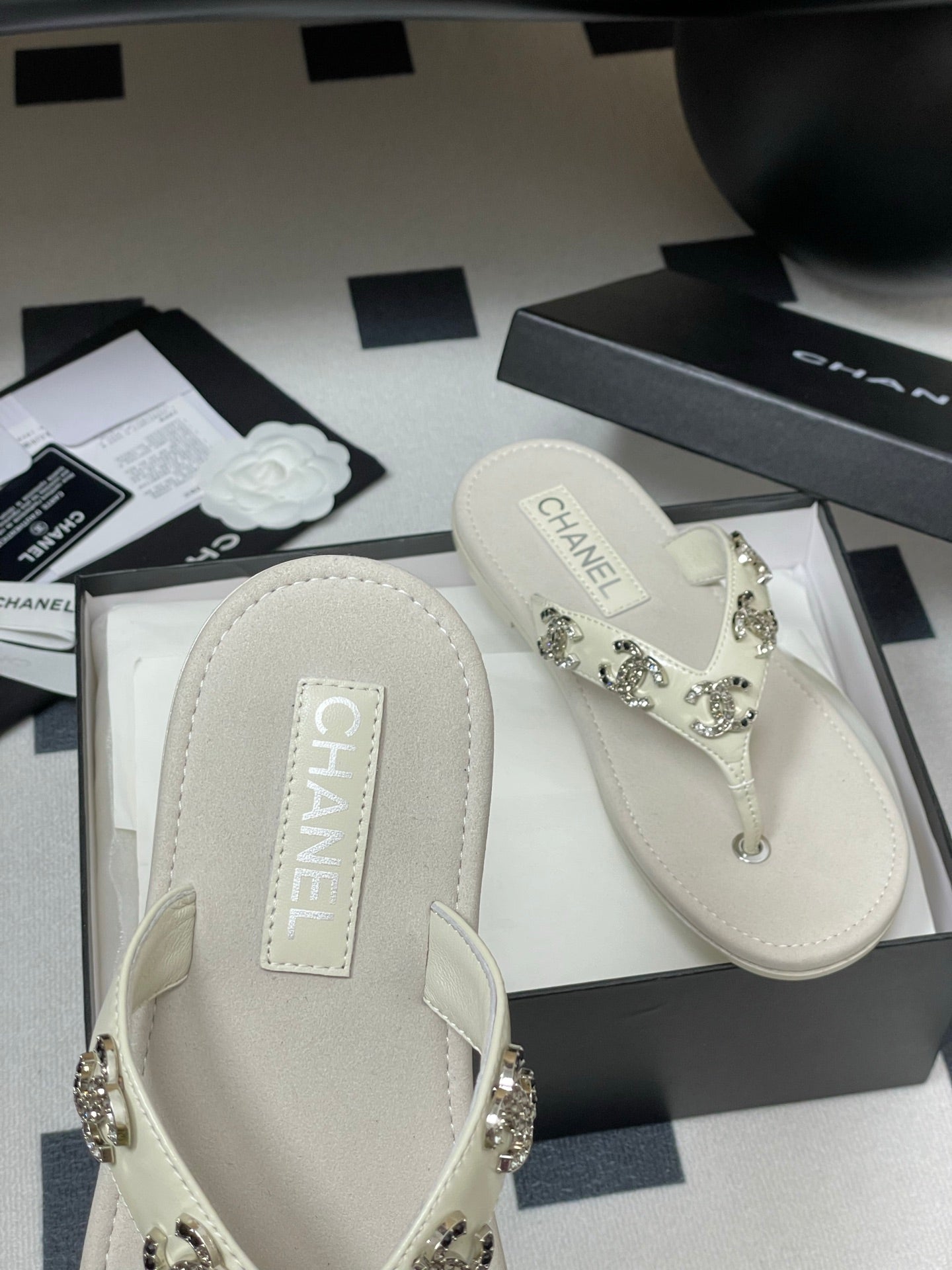 CC 25P Double C 5 Motifs Thongs Sandal Grey Sheepskin 247698