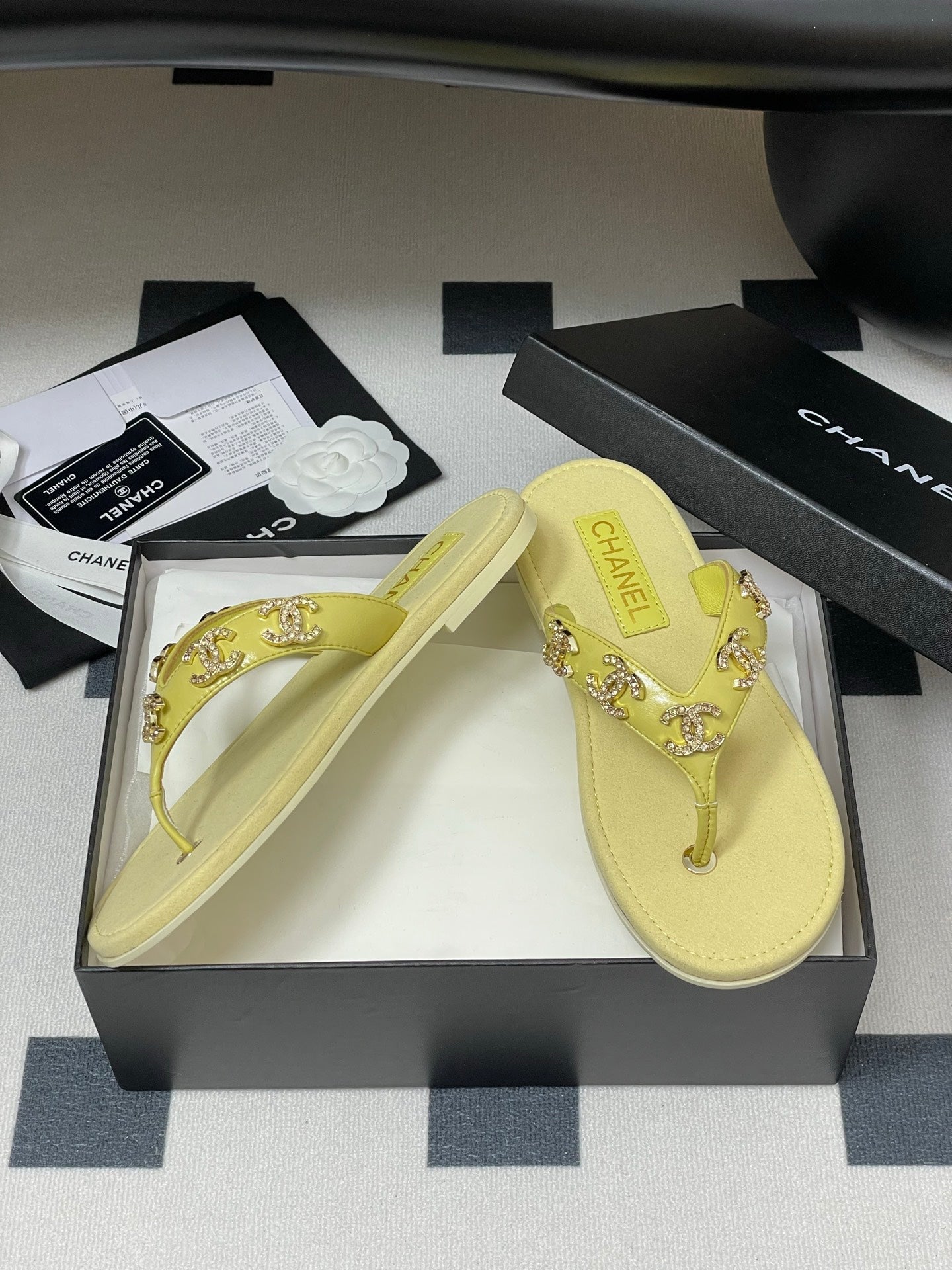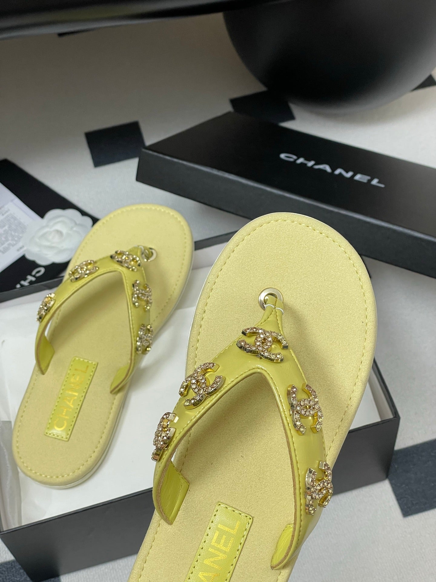 CC 25P Double C 5 Motifs Thongs Sandal Yellow Sheepskin 247693