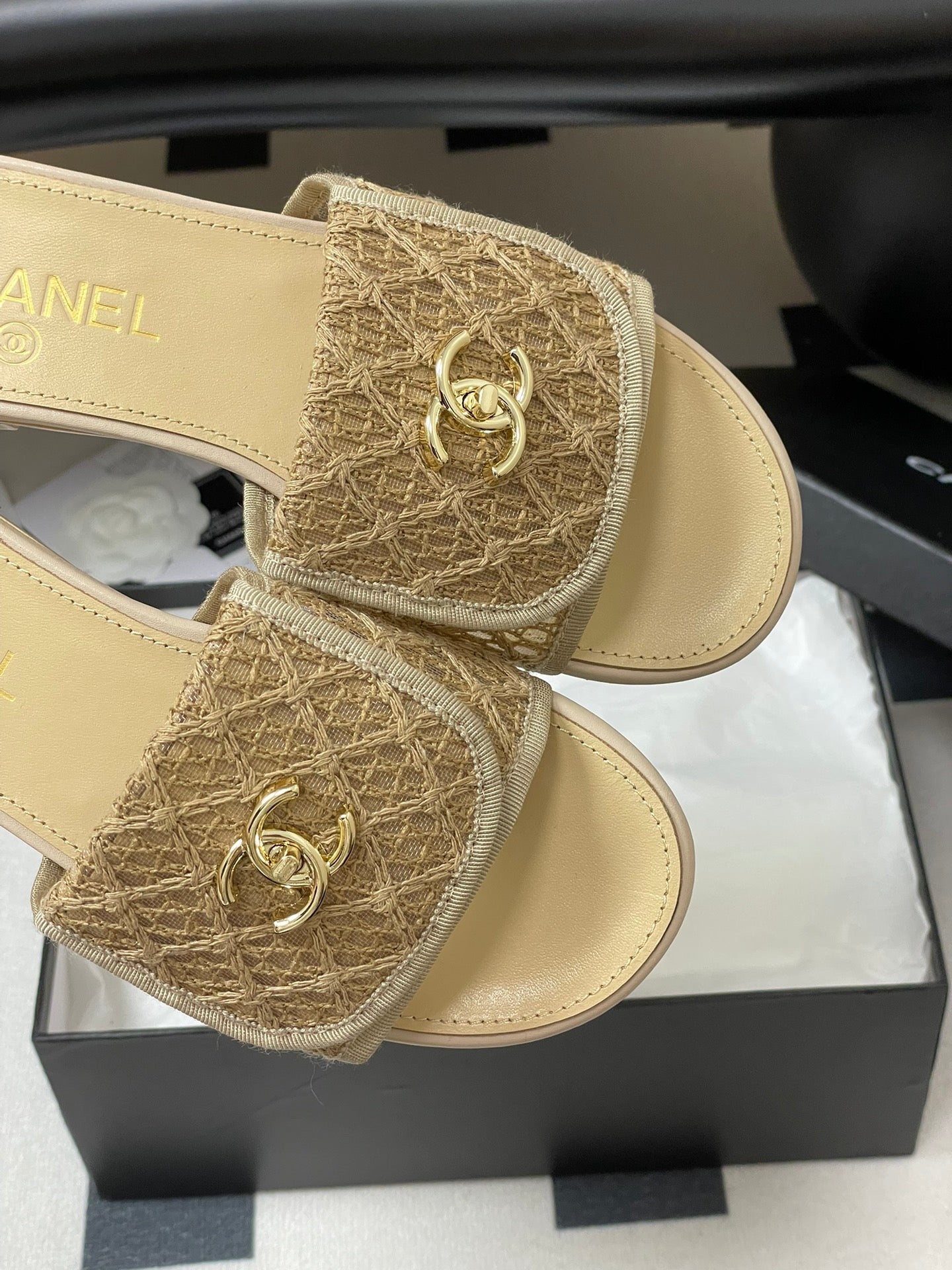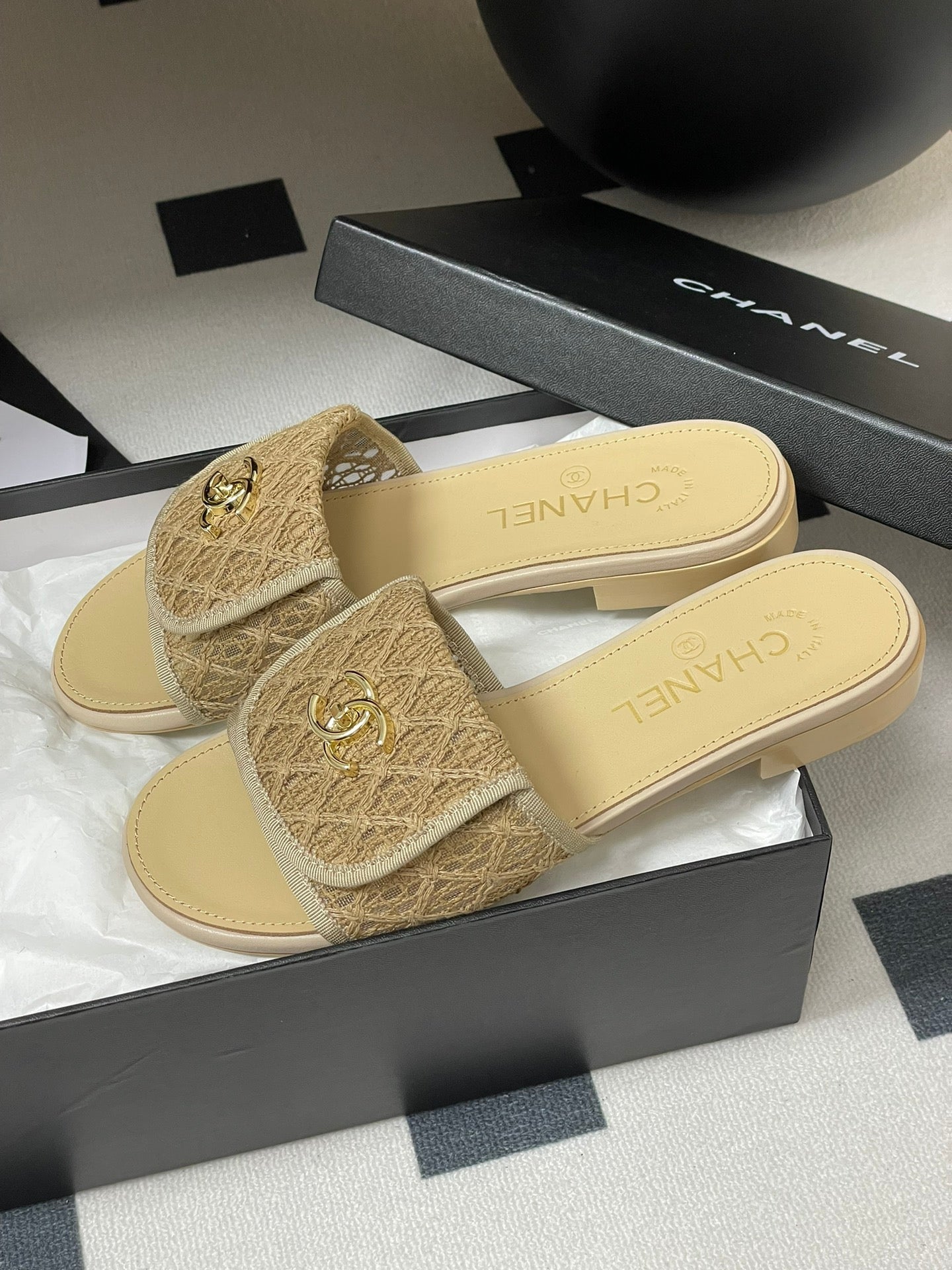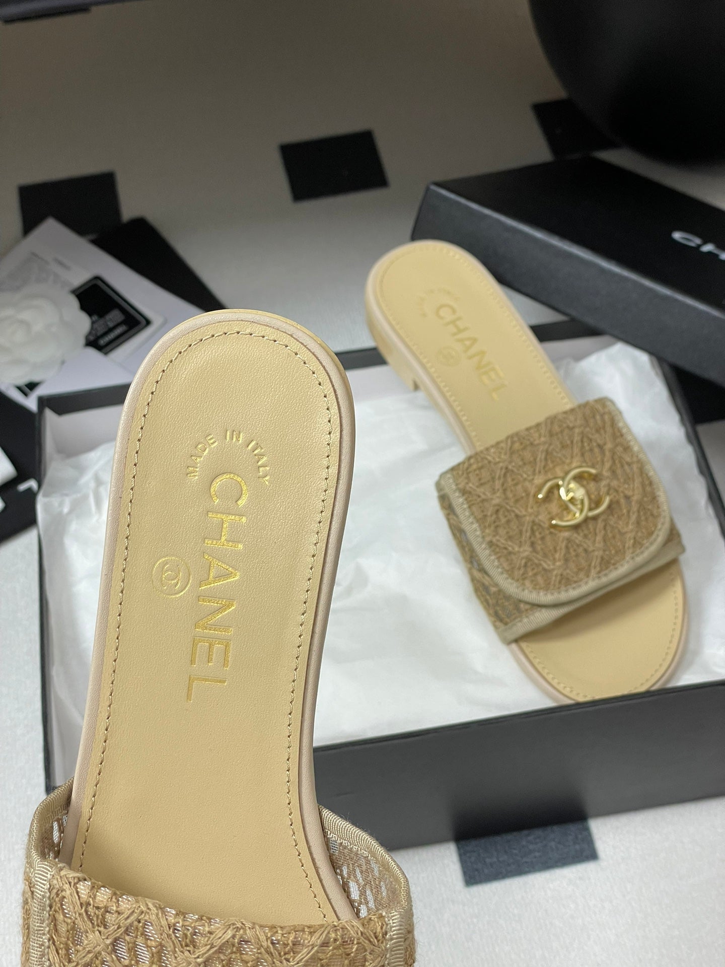 CC 25S Buckle Bag Mule Beige Lace Fabric and Sheepskin 247591