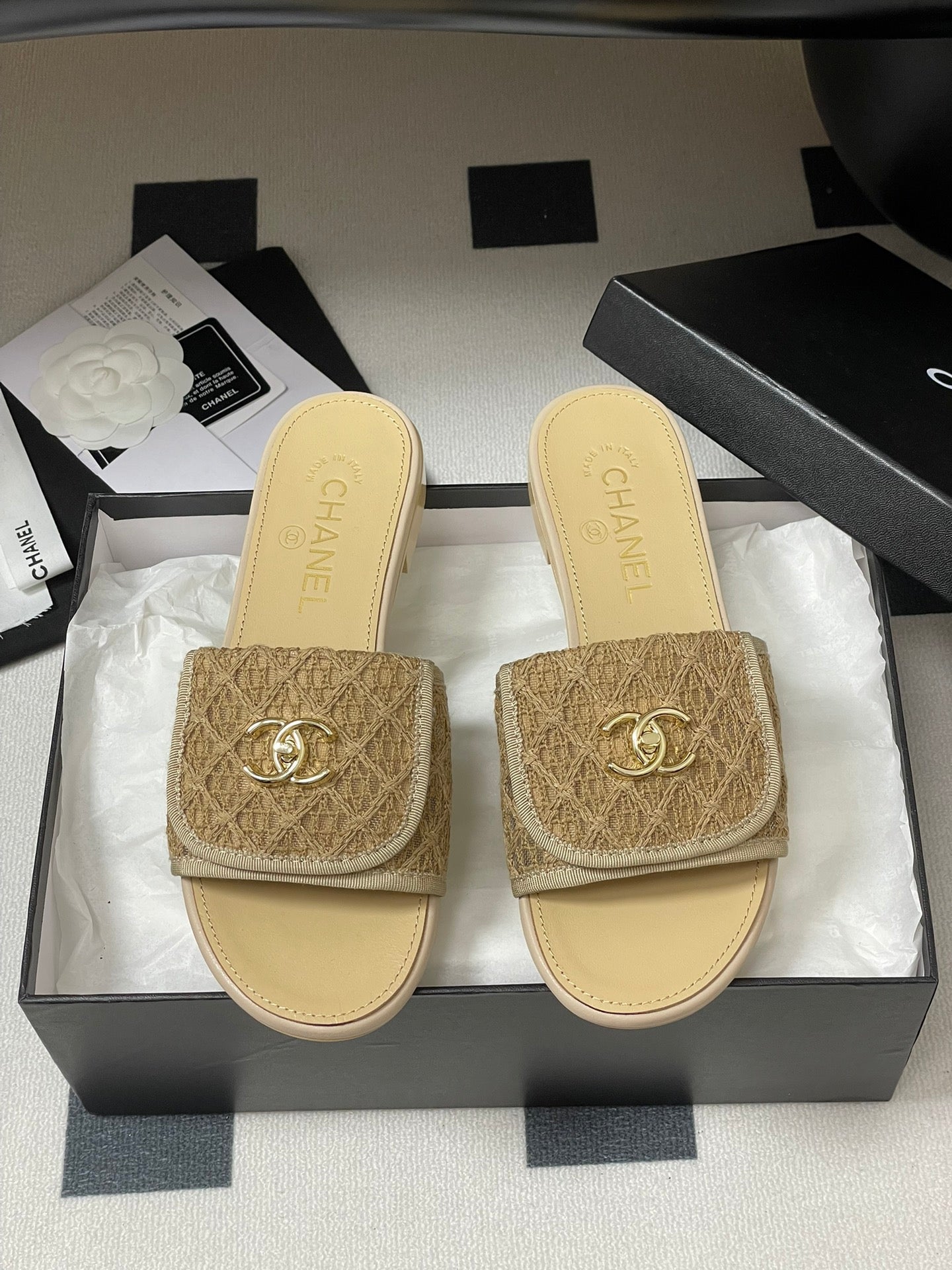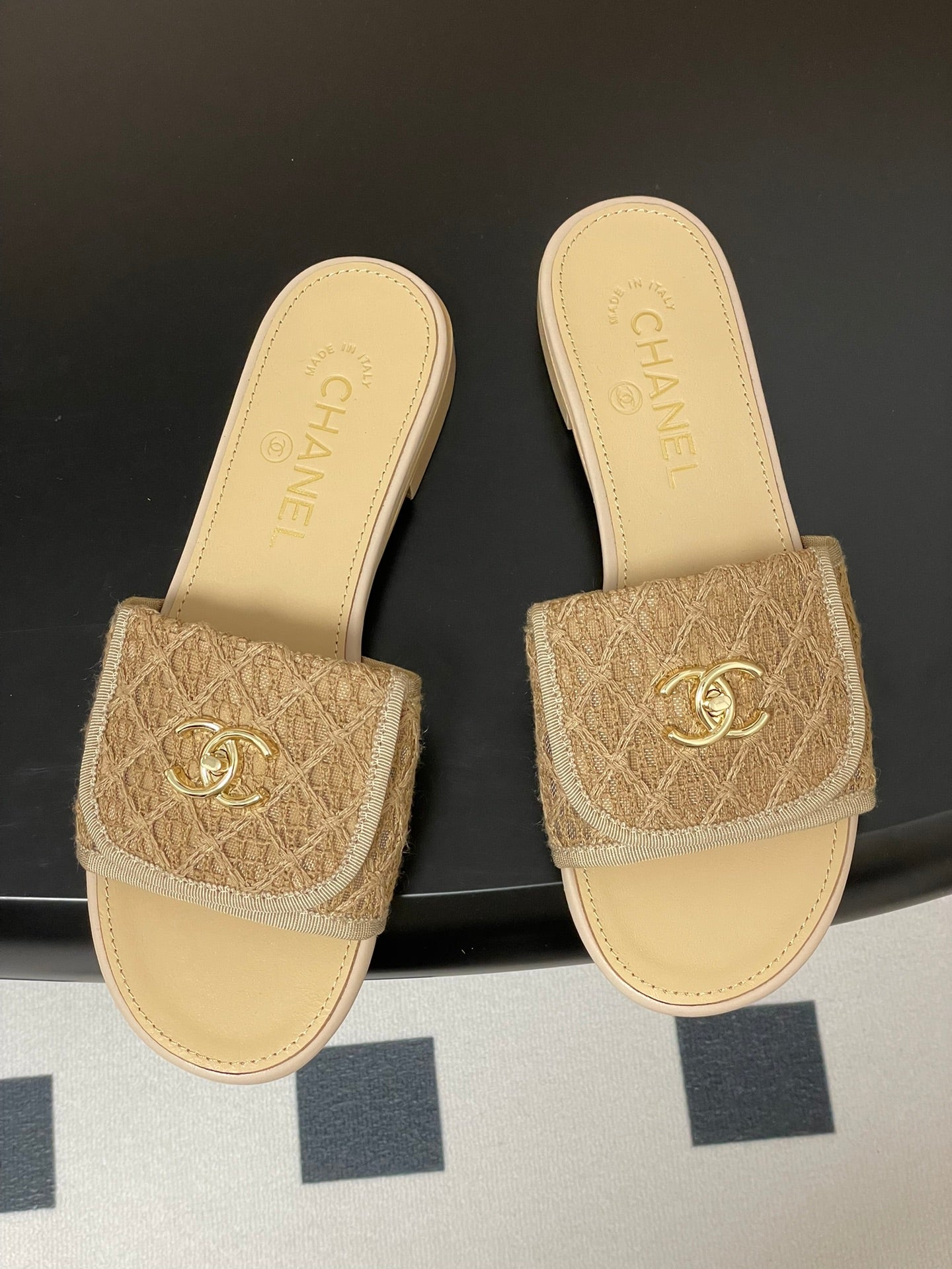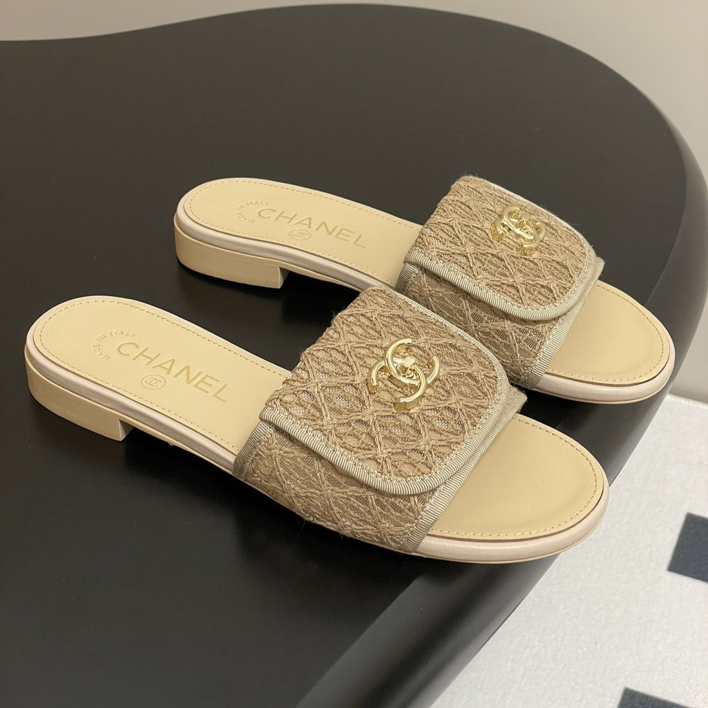 CC 25S Buckle Bag Mule Beige Lace Fabric and Sheepskin 247591