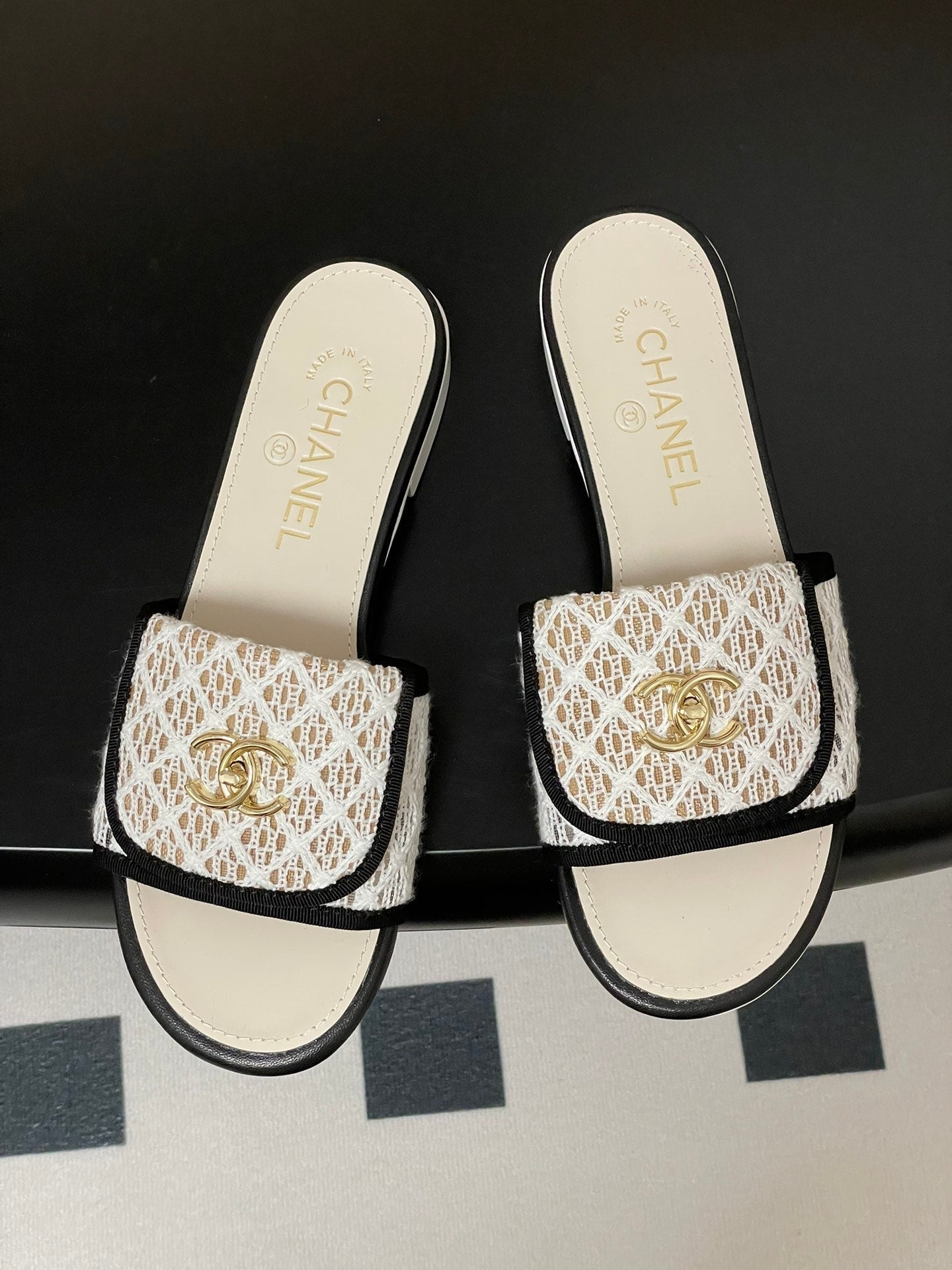 CC 25S Buckle Bag Mule White Mix Black Lace Fabric and Sheepskin 247590