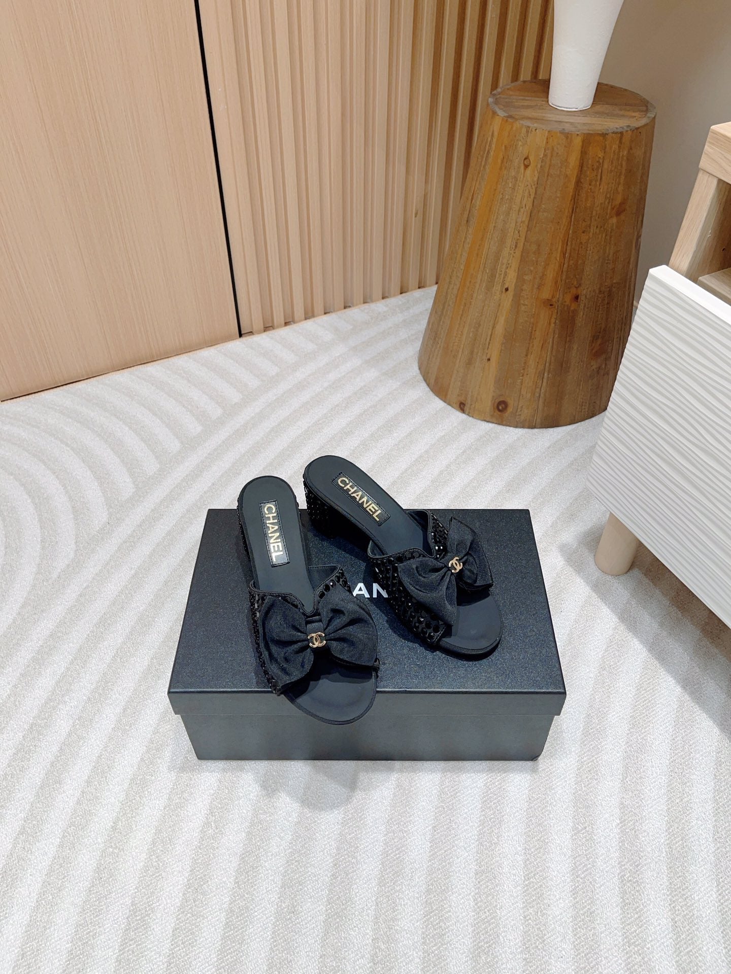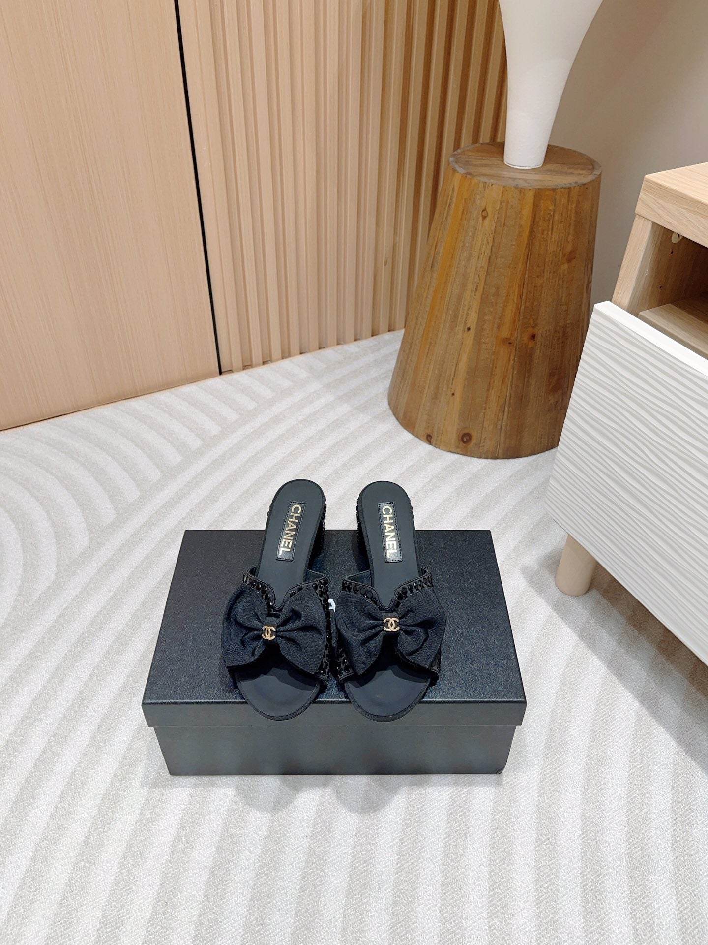 - Upper: Satin with rhinestones