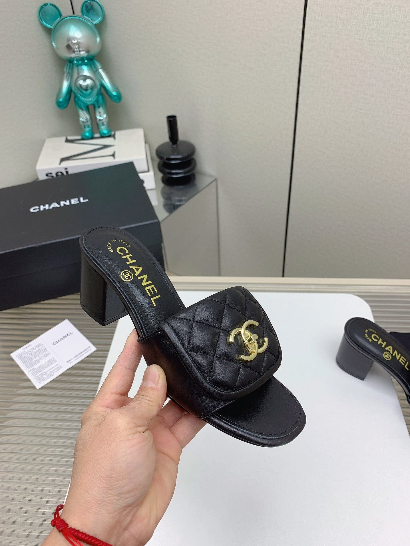 CC Mule Sandals 50mm In Black Quilted Lambskin 148942