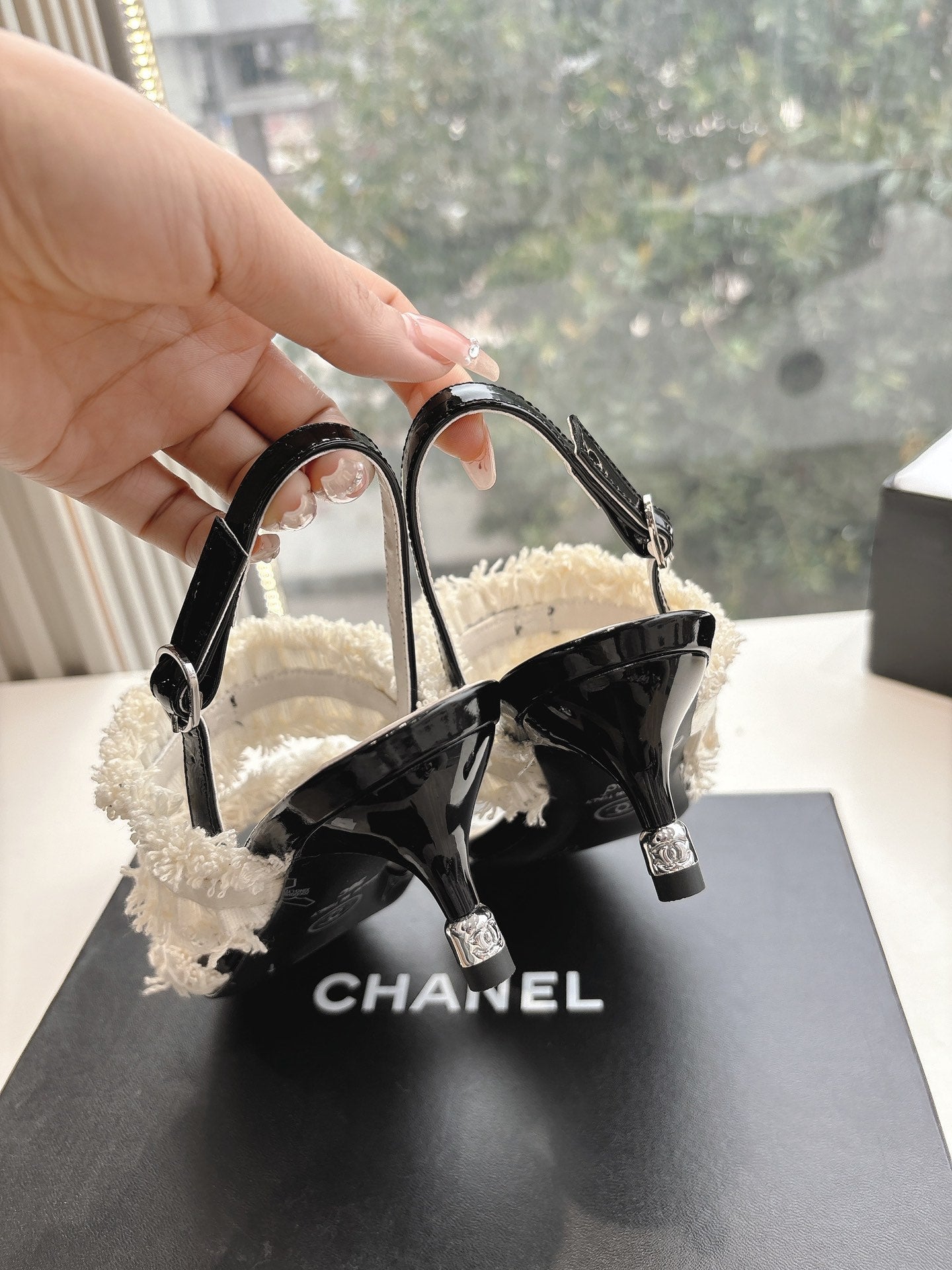 CC Sandals with bow tie White 4,5cm Lambskin 202873