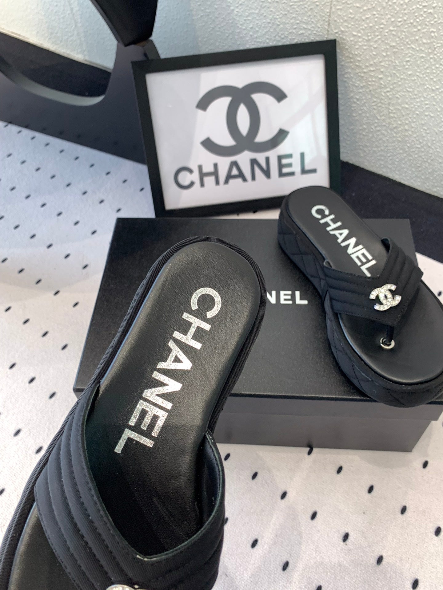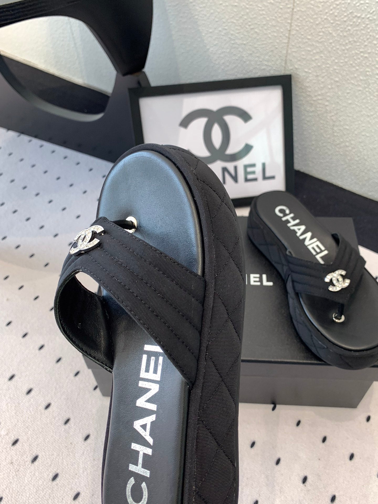 CC Thong Slippers In Black Denim Fabric 147053