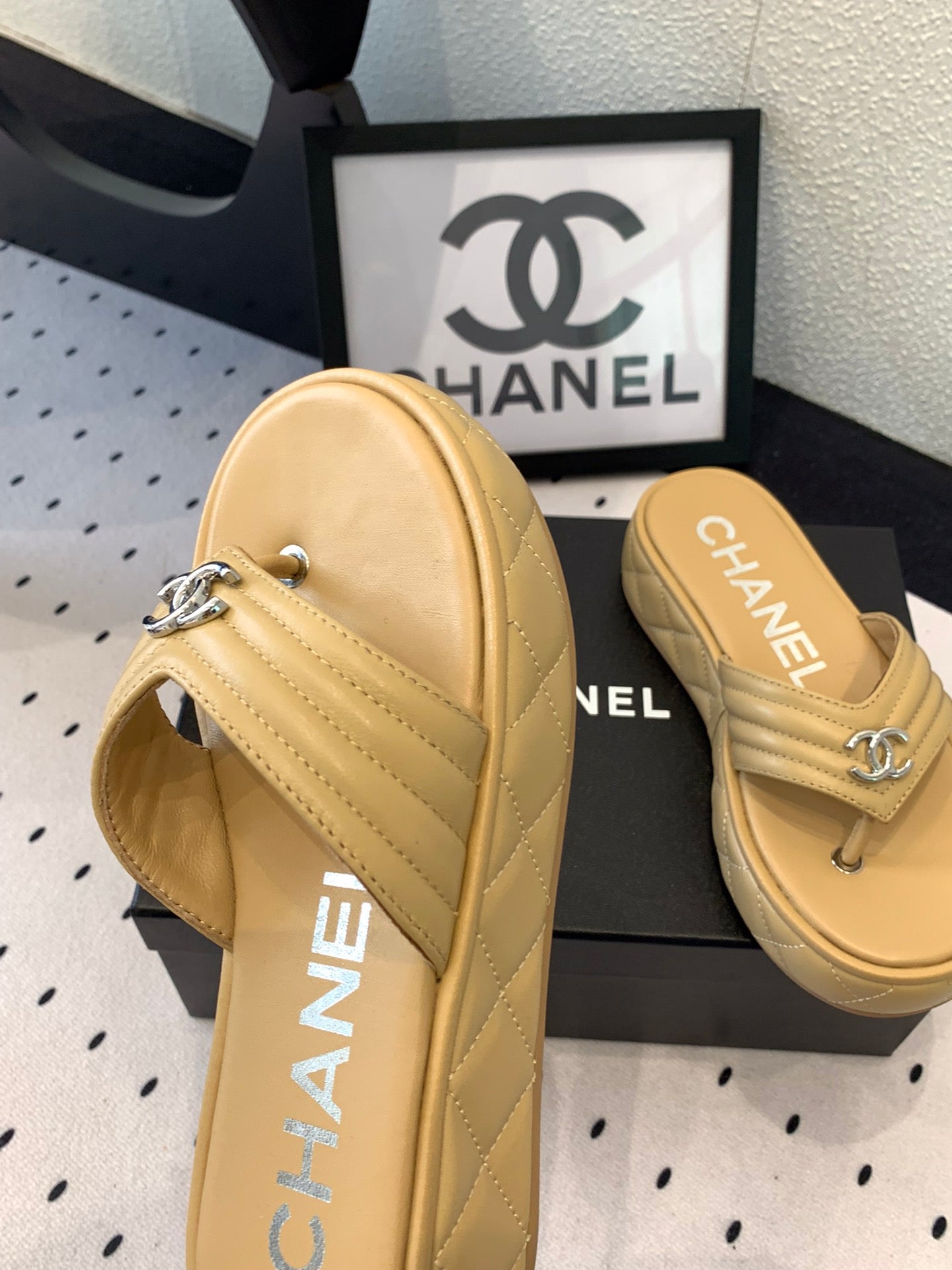 CC Thong Slippers In Dark Beige Lambskin 147050