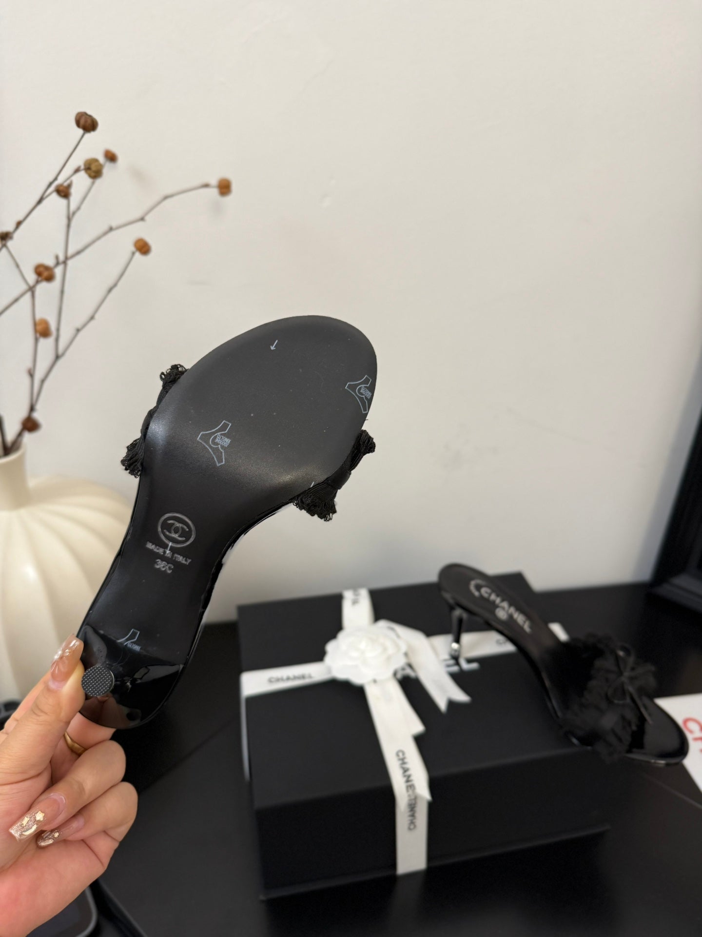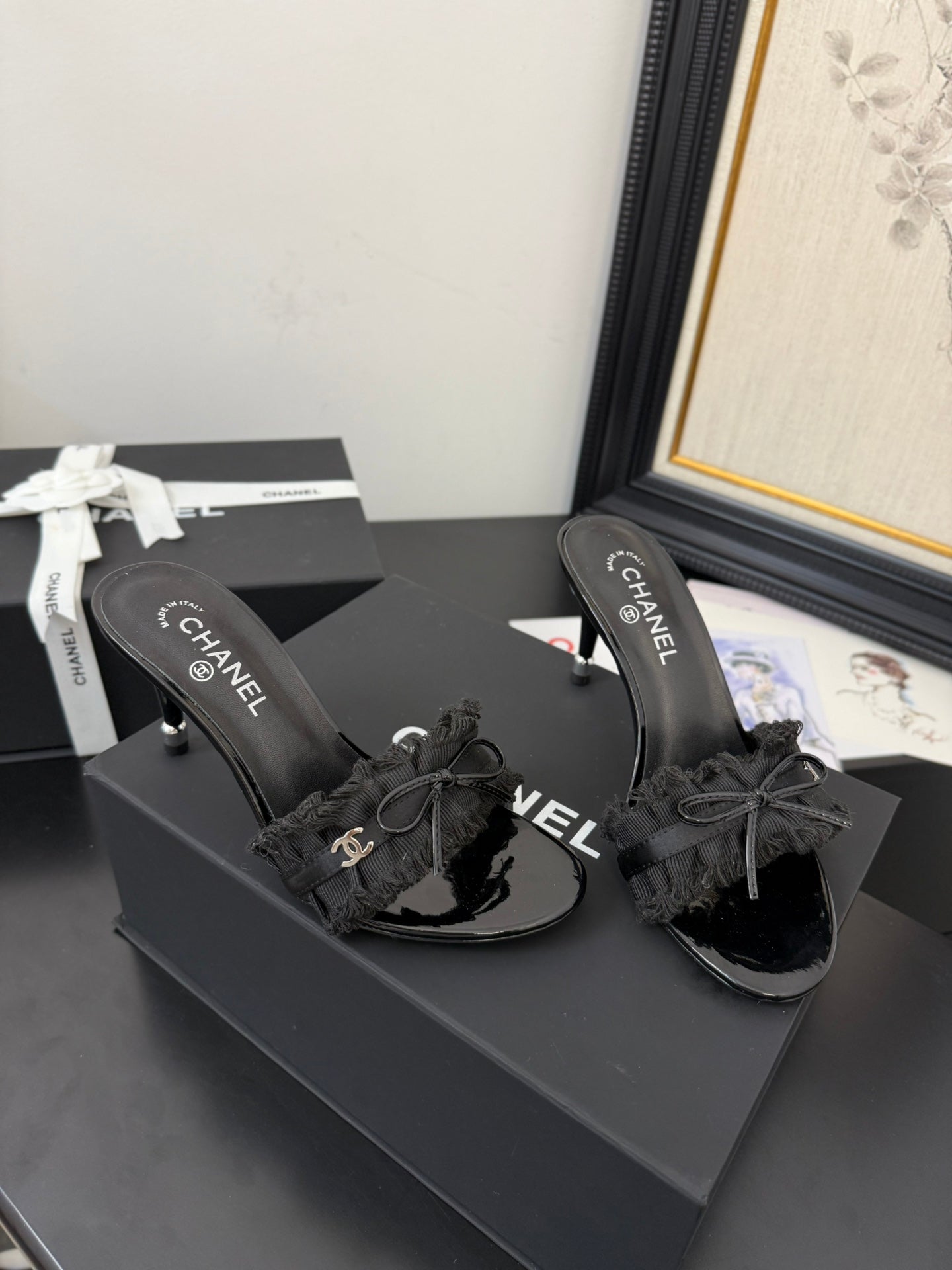cc25 slide sandal 90mm ruffle bow heels black grosgrain canvas 233588