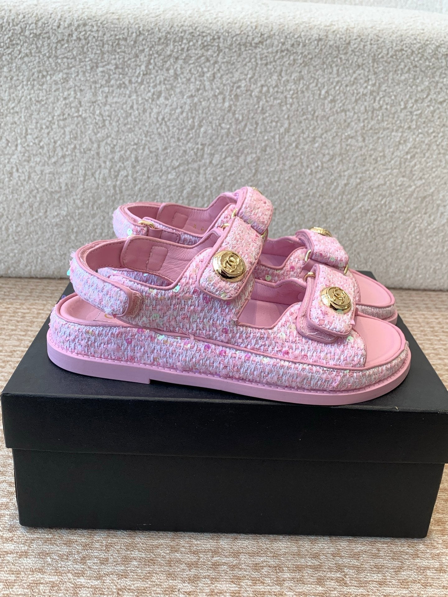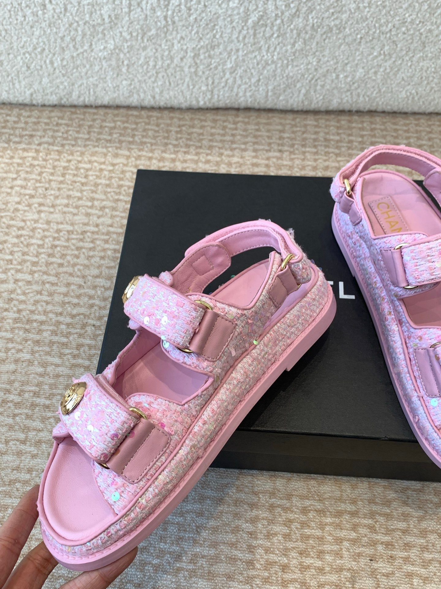 DAD SANDAL IN BRIGHT PINK FABRIC WITH SEQUINS