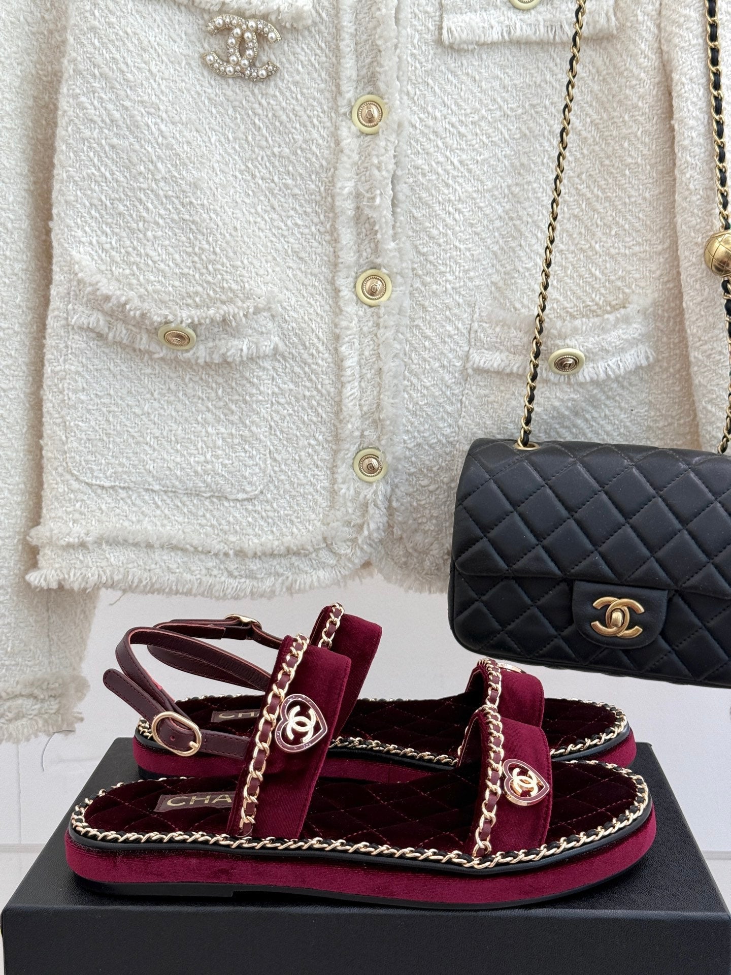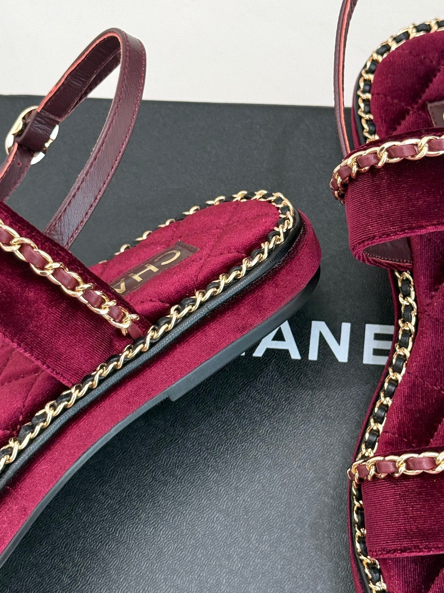 FLAT CHAIN HEART SANDAL IN PLUM PURPLE VELVET