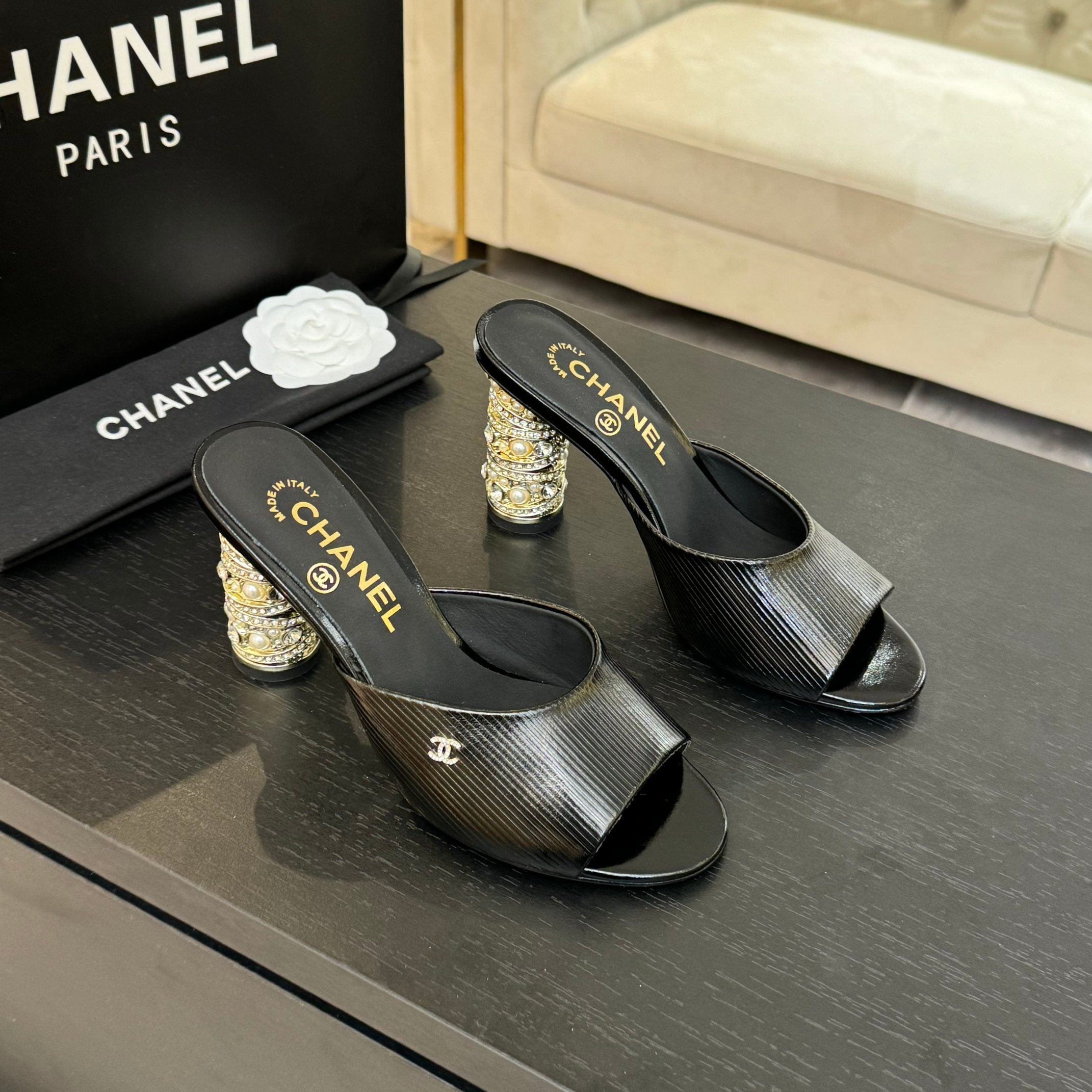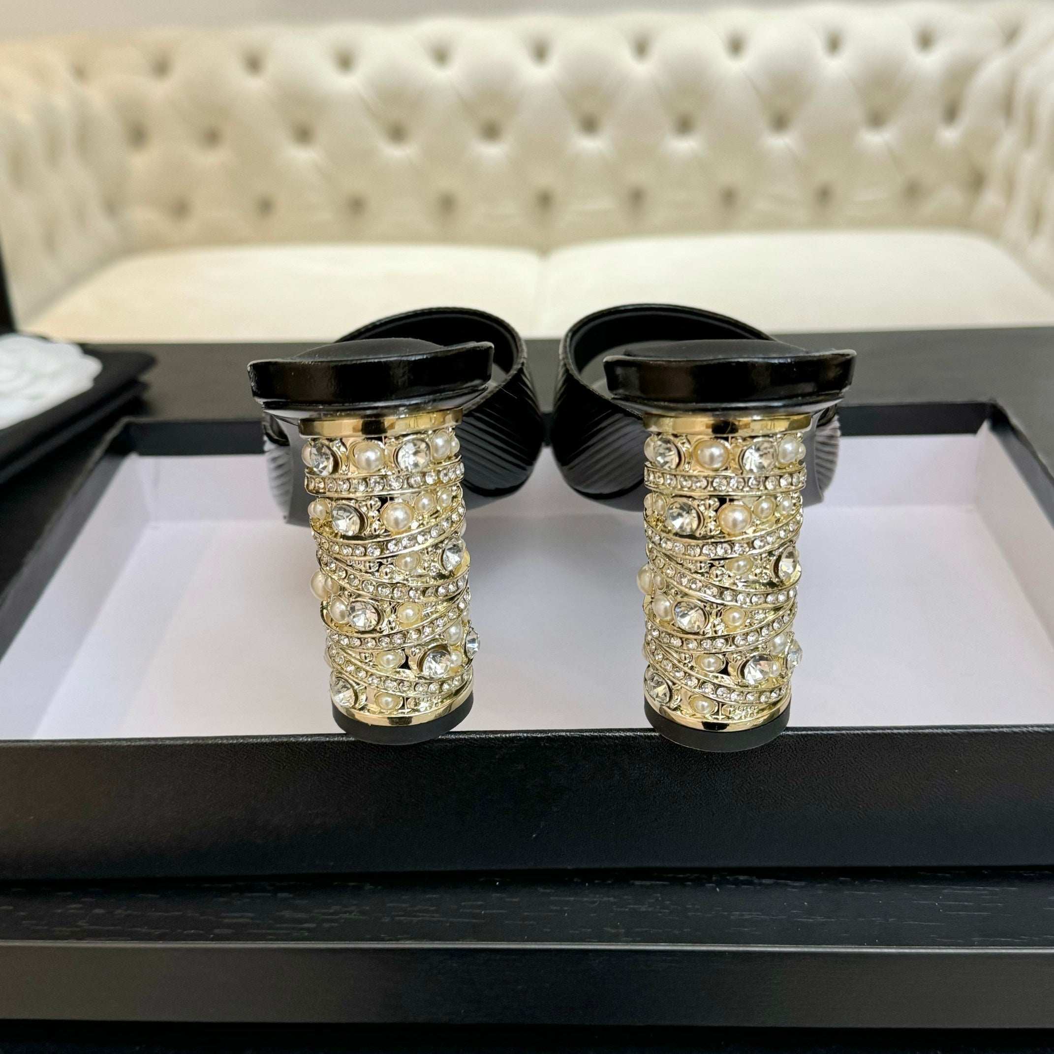 T-STRAP PEARL HEEL 85 MM SANDALS IN BLACK LAMBSKIN MULE