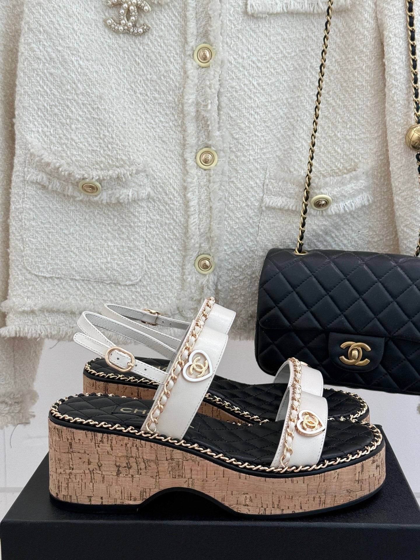 THICK-SOLED CHAIN HEART SANDAL IN WHITE LAMBSKIN