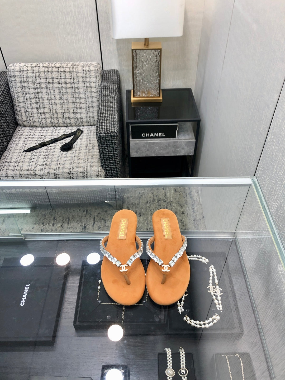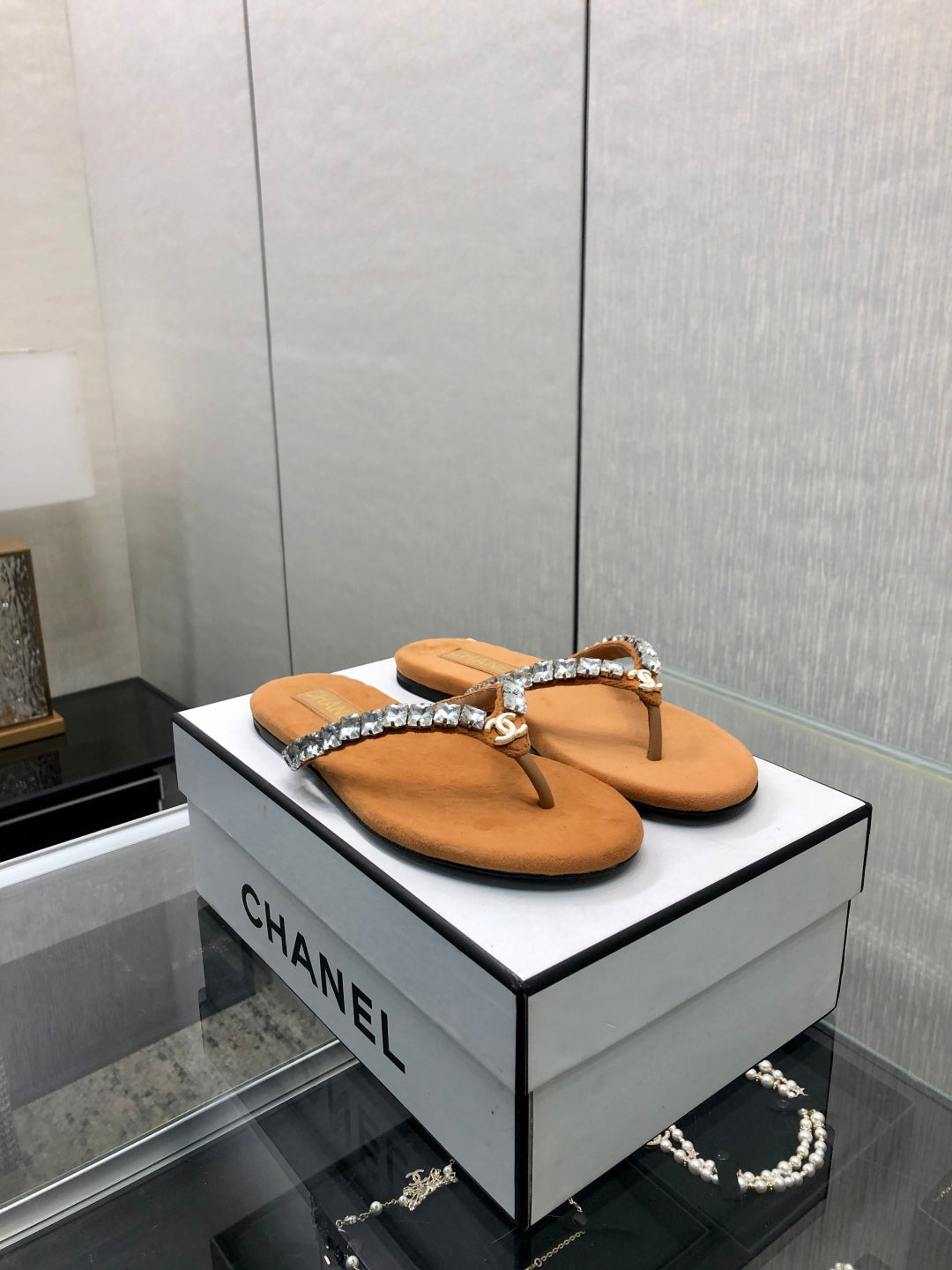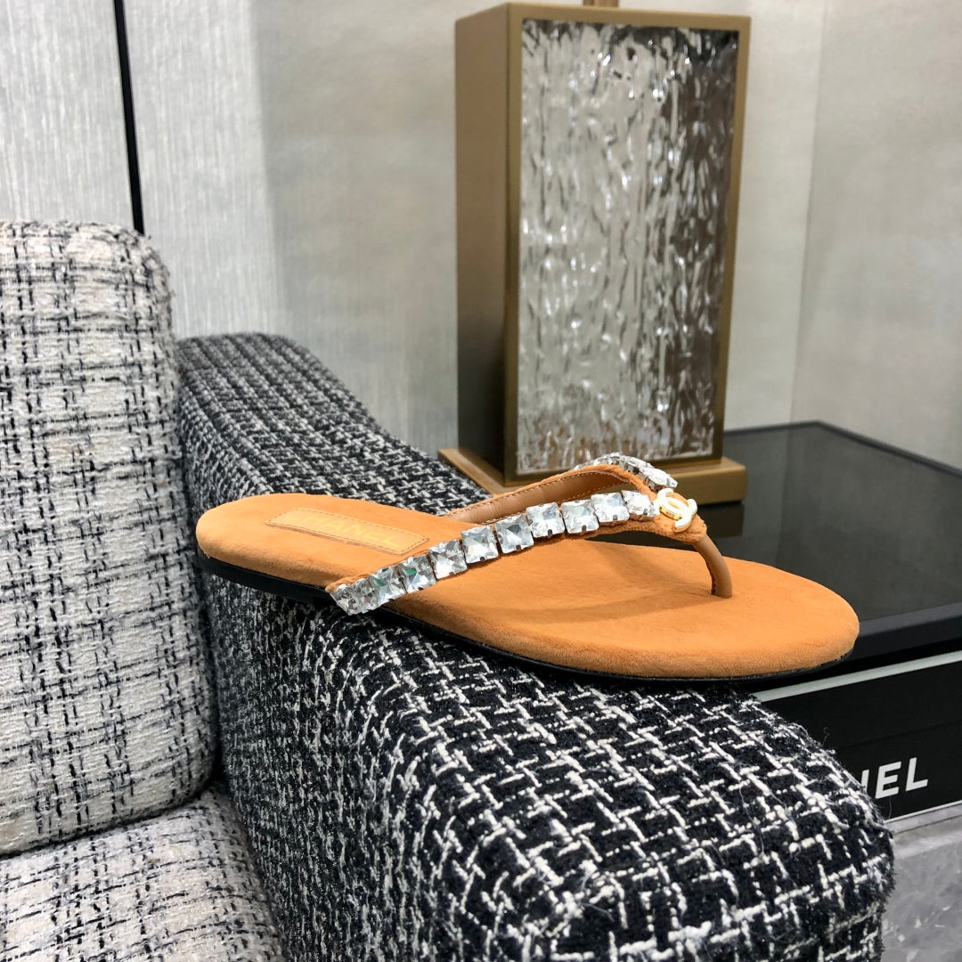THONG SLIDE IN BRONZE BROWN SUEDE WITH WHITE CRYSTALS