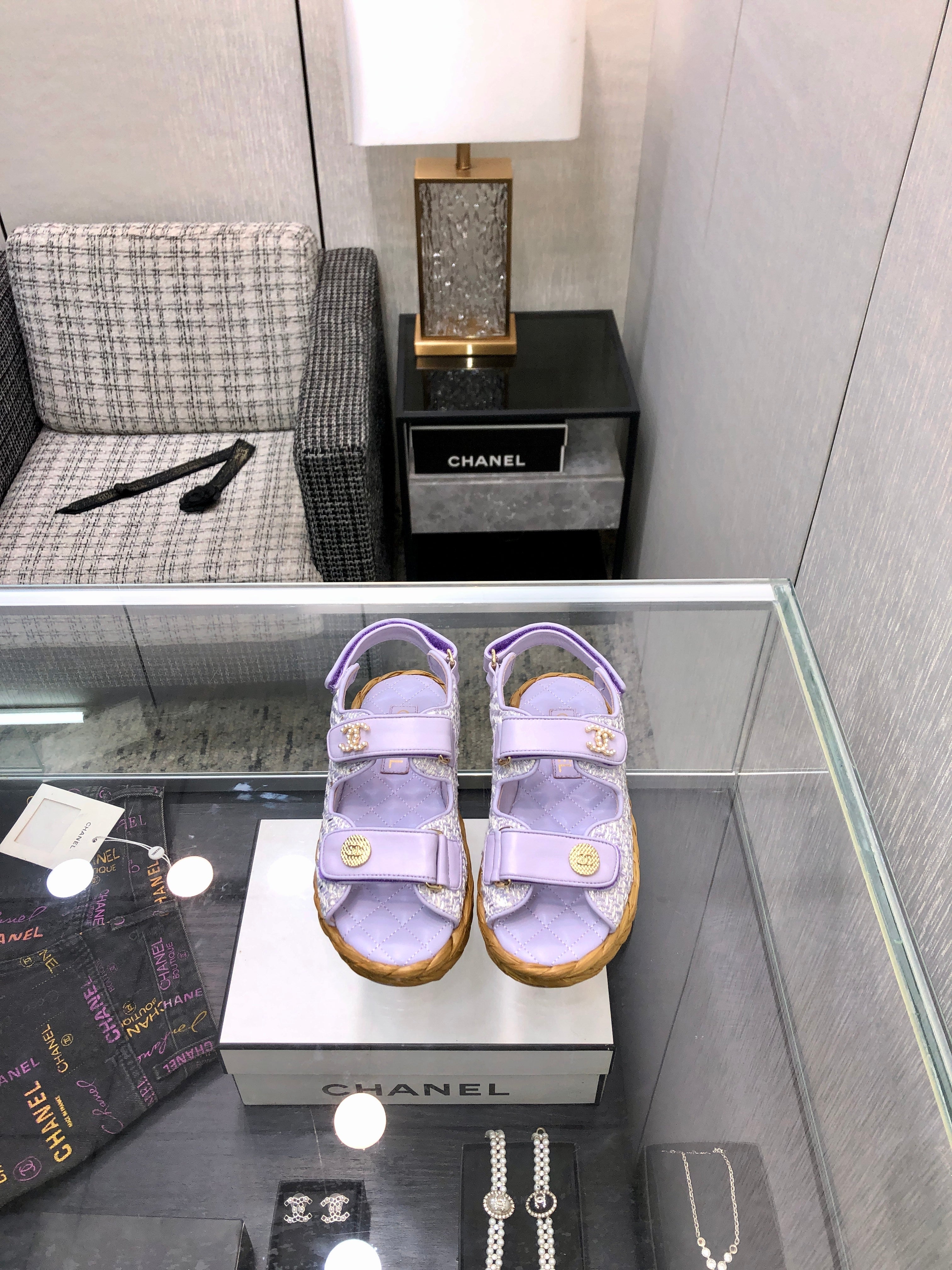 VELCRO SANDALS IN PALE PURPLE LAMBSKIN AND TWEED FABRIC