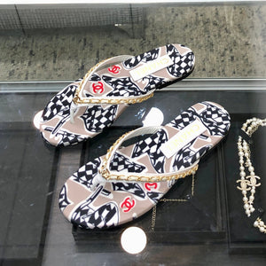 THONG SLIDE IN CHERRY RED MIX COLORFUL FLORAL FABRIC