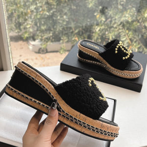 HIGH FLATFORM SLIPPER IN WHITE EMBOSSED SHEEPSKIN