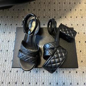 CC 25SS Platform Sandals 5.5cm Black Sheepskin 319628