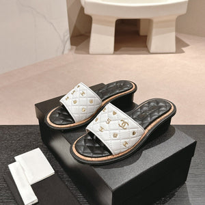 cc dad sandal white black quilted calfskin