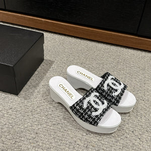 cc sandal 100 black white tweed sequin