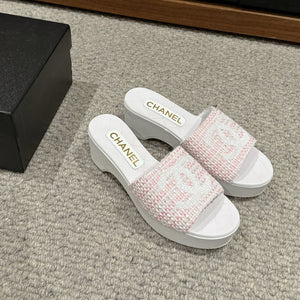 cc sandal 100 pink white tweed sequin