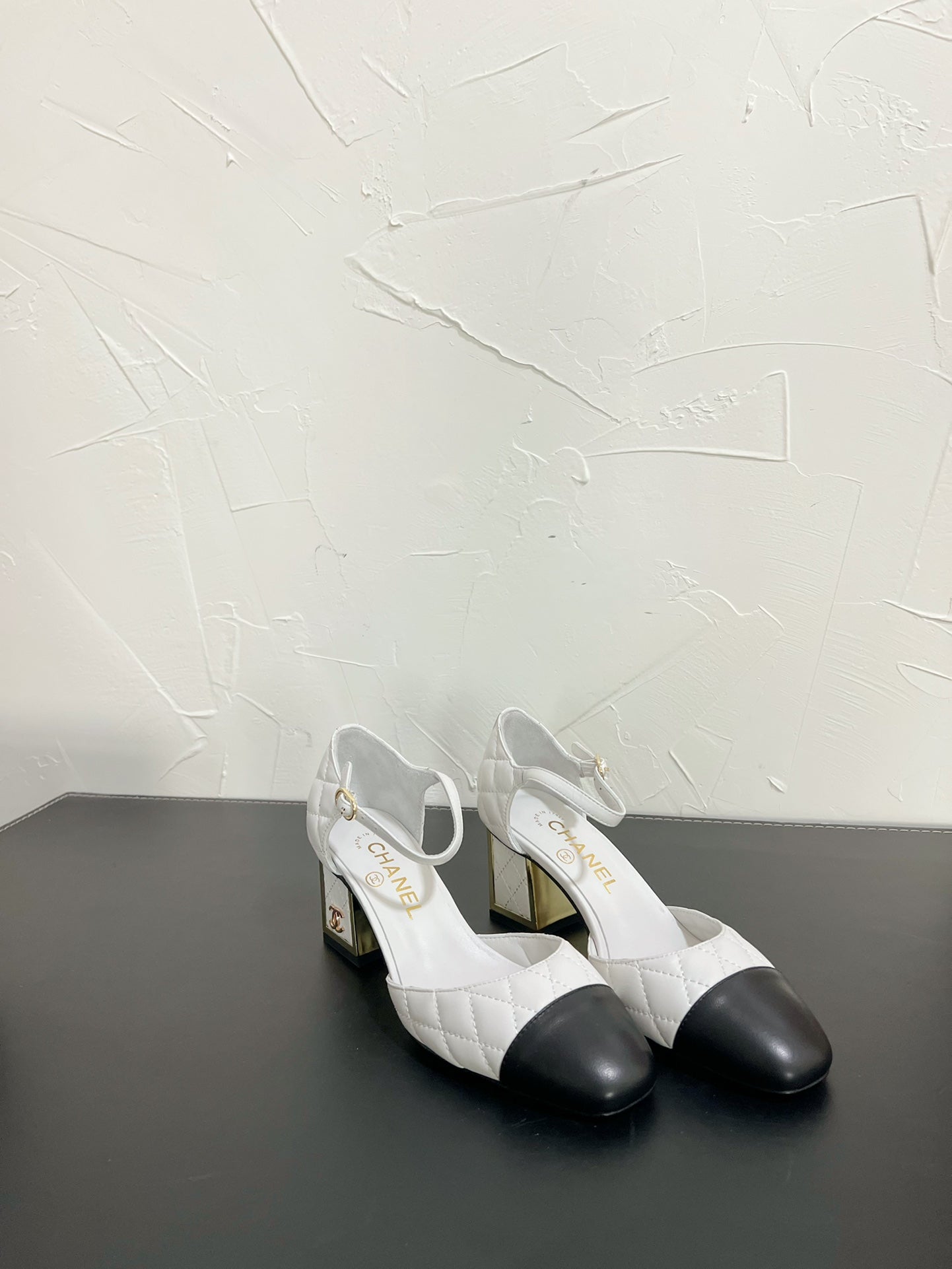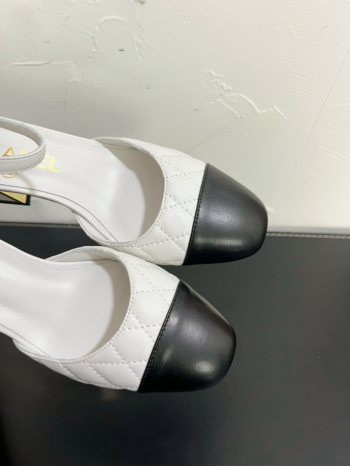 CC Mary Janes 55mm In White Mix Black Quilted Lambskin 949765