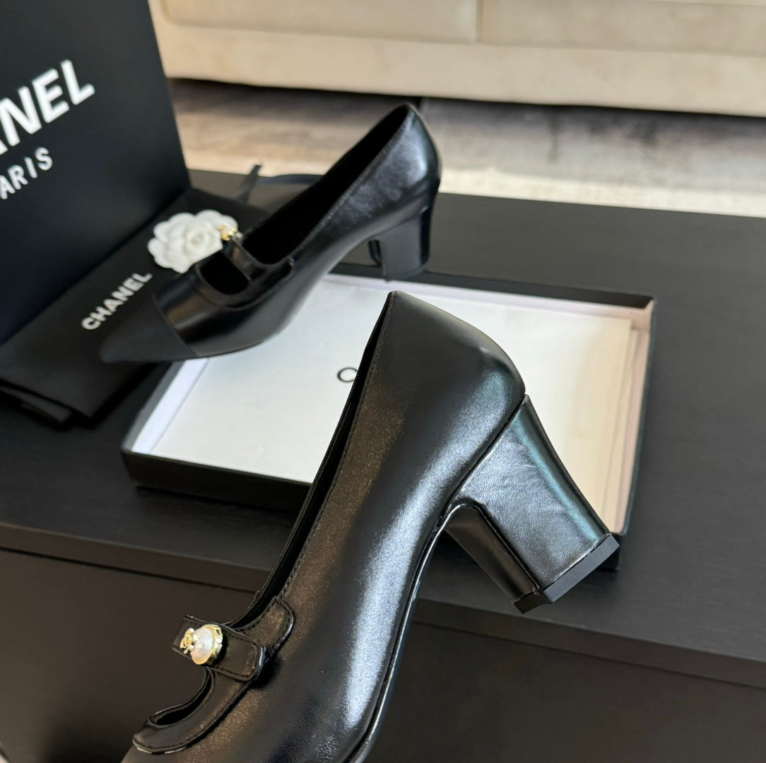 Double C WOMEN'S SHOES SPIRIT TOE Black Lambskin