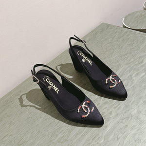 cc slingbacks 55 black lambskin embroidery grosgrain