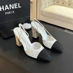 cc slingbacks sandal 85 flower black white calfskin