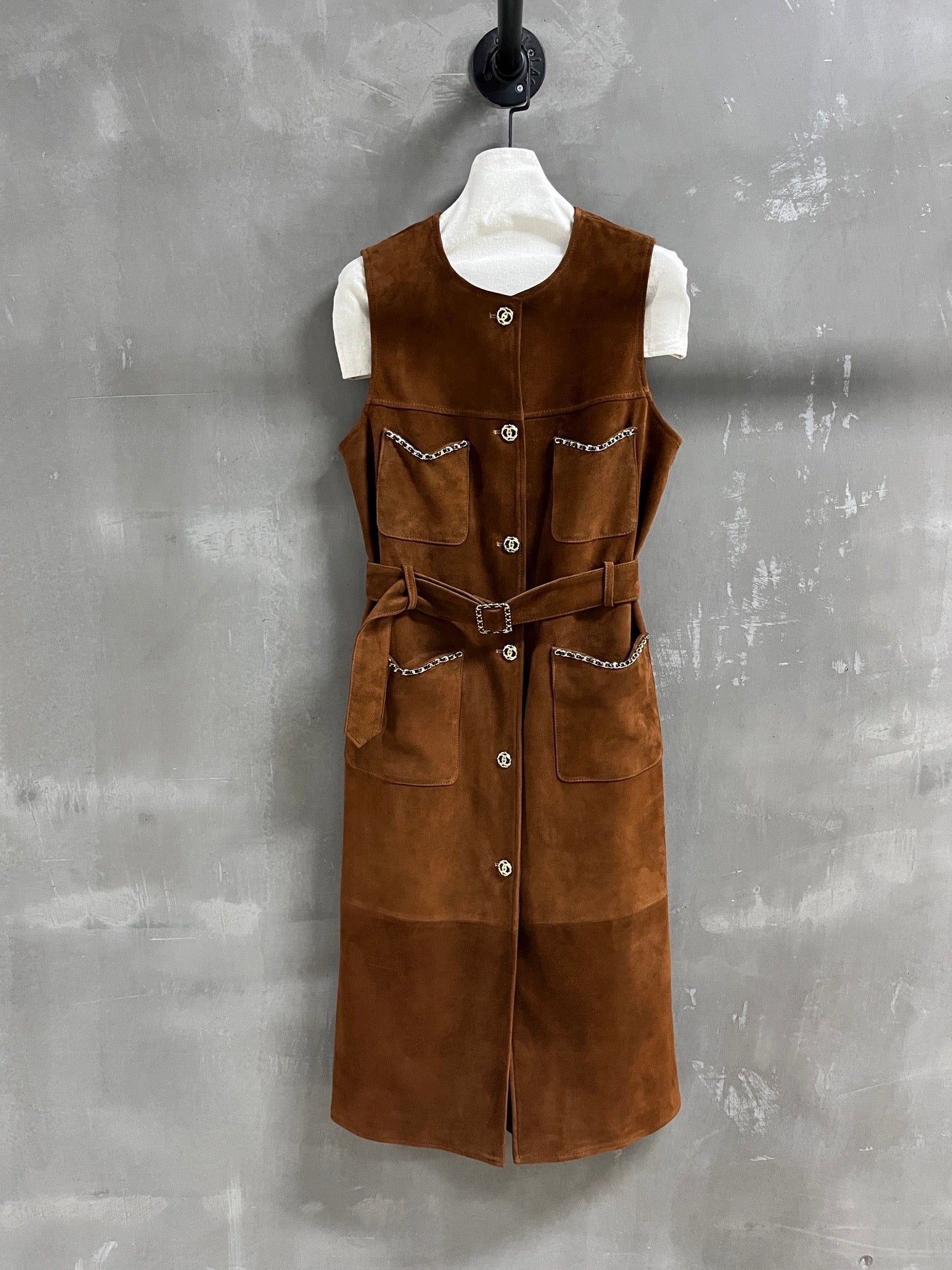 CC 25 Chain Trench Vest Coat Blend Tan Cashmere