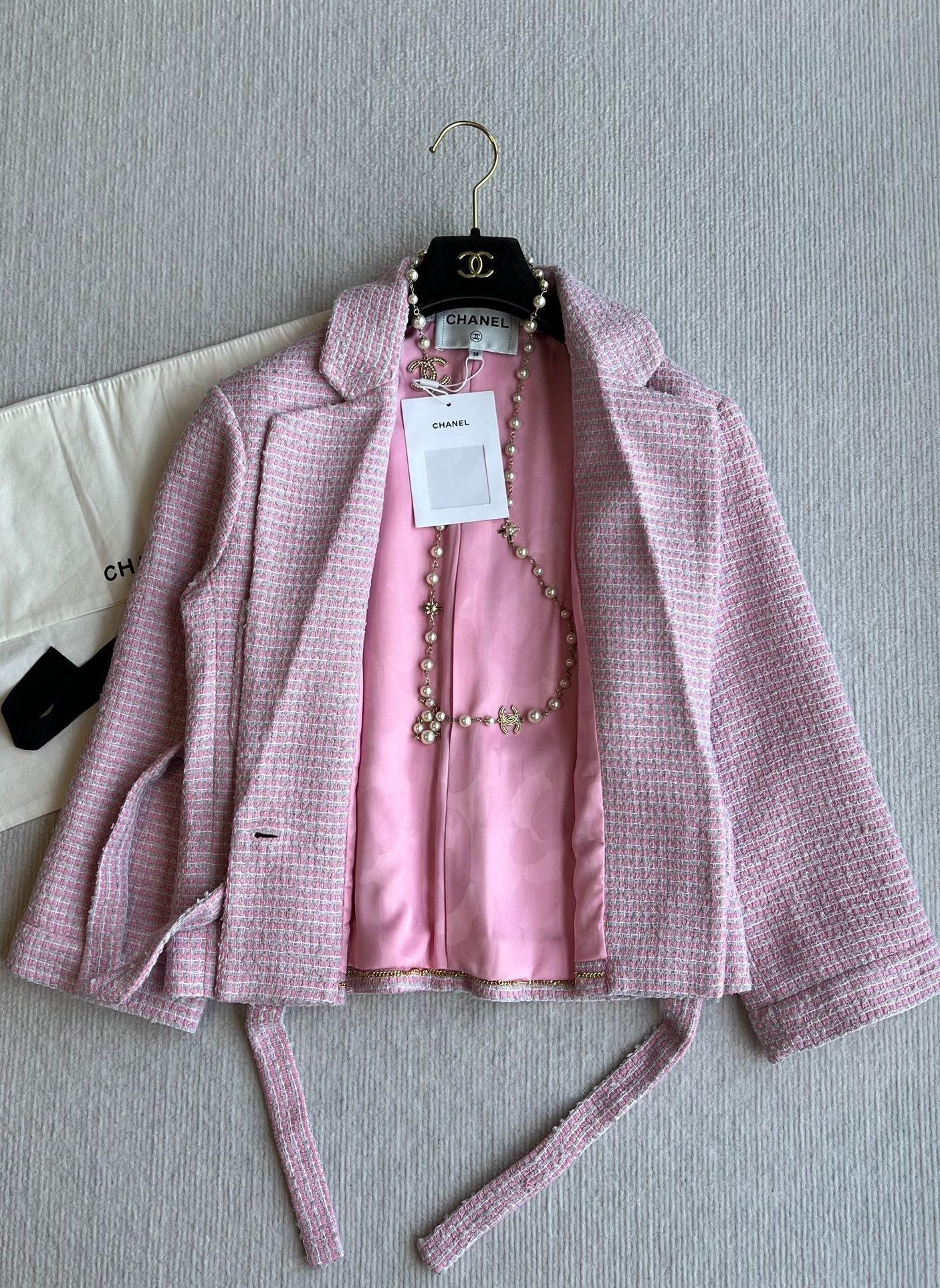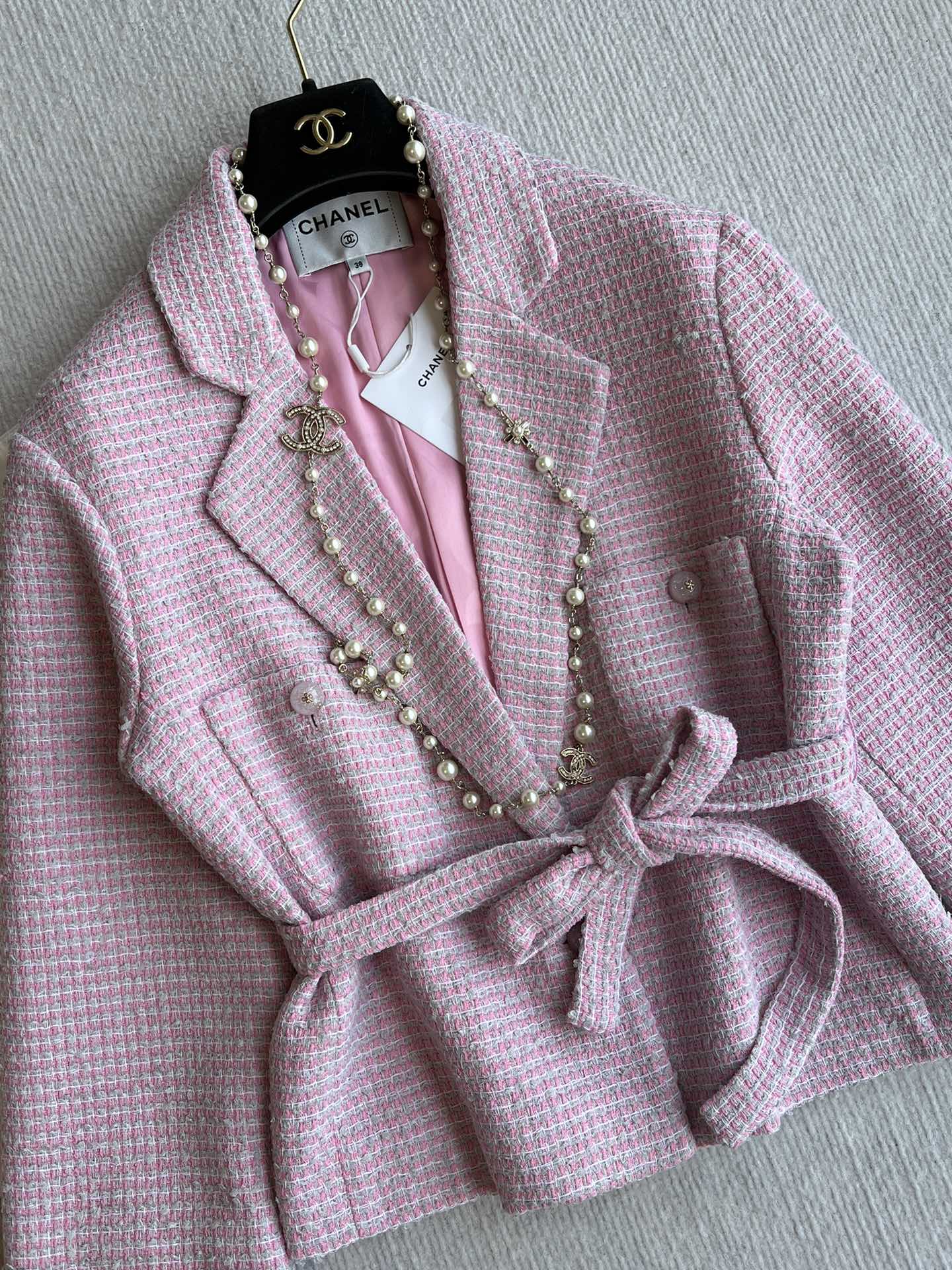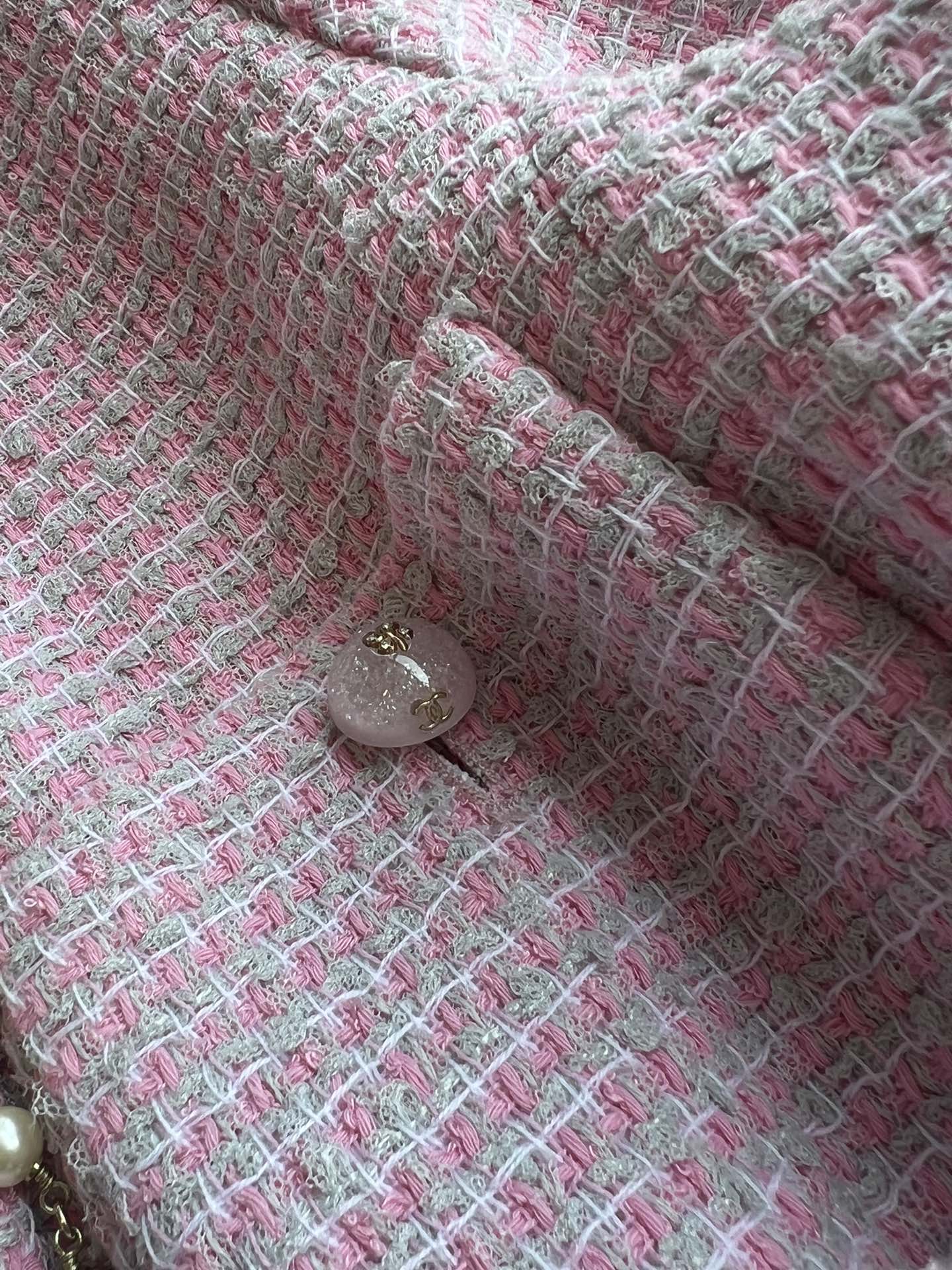 CC 25SS Lace-up Jacket Pink Sequins Tweed 235919