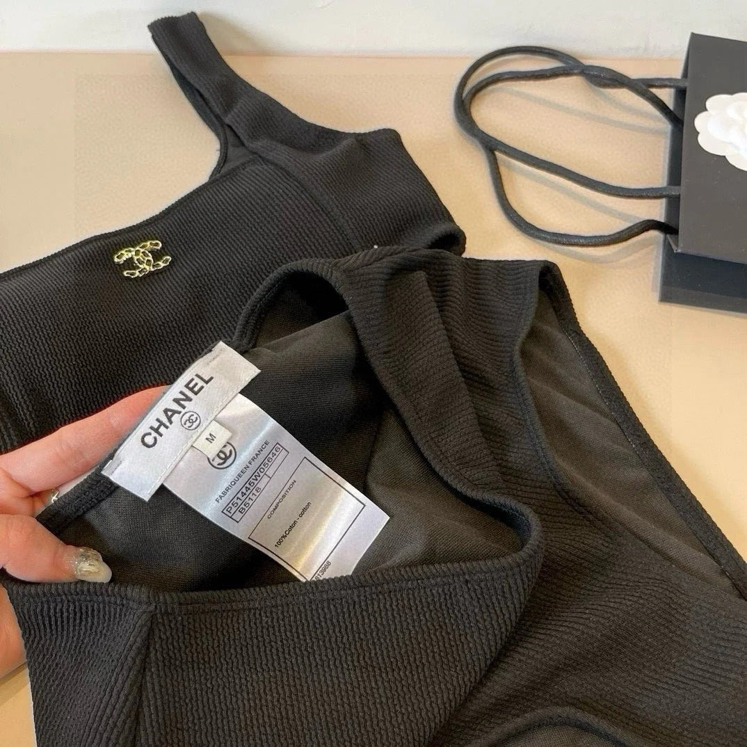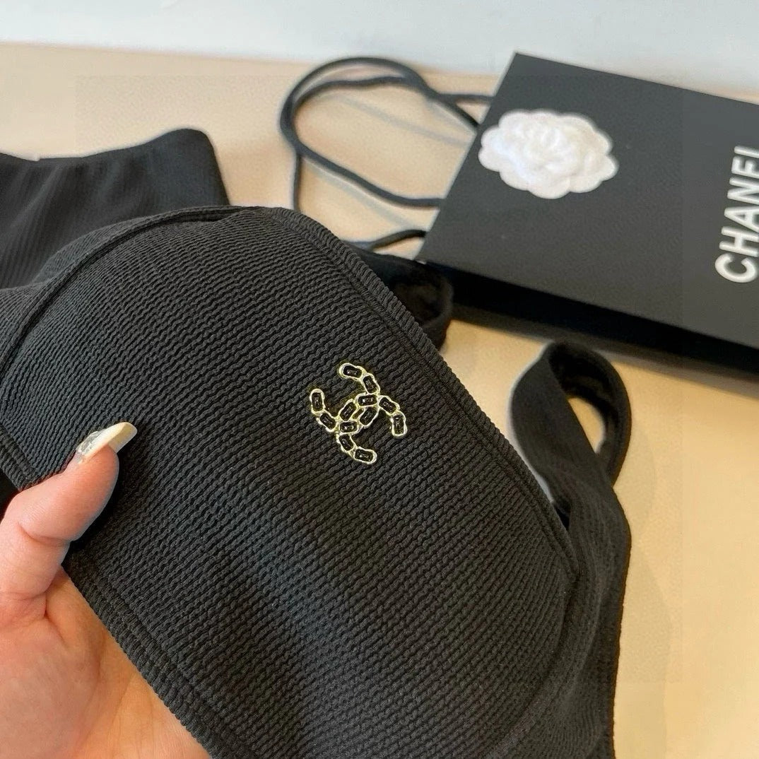 CC BIKINI SWIMSUIT SET IN BLACK ATTACHED WITH LOGO 629243