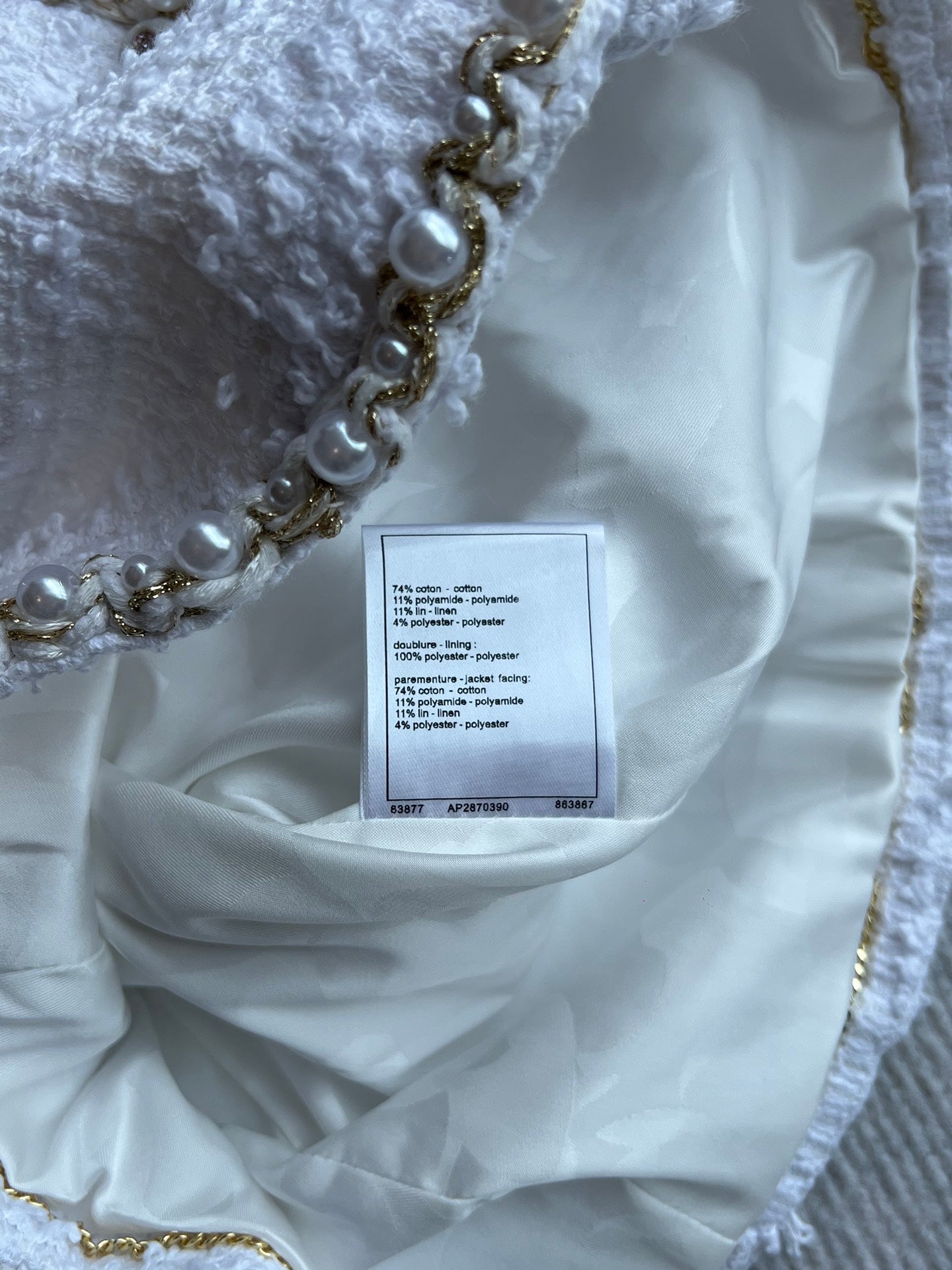 Chanel 25P Cardigan White Tweed With Pearl 234889